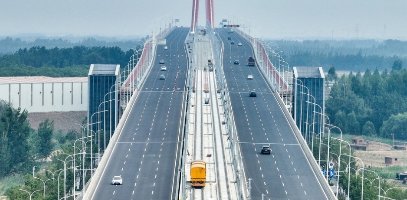 近日,记者在济南黄河凤凰大桥北首看到,济南轨道交通济阳线地下部分和跨黄大桥连接处总长约1公里,目前高架桥梁已经浇筑完成,南首与黄河凤凰大桥引桥相连,北首与黄河大道地下段相通,双向轨道已经铺设到位。(来源:新黄河)