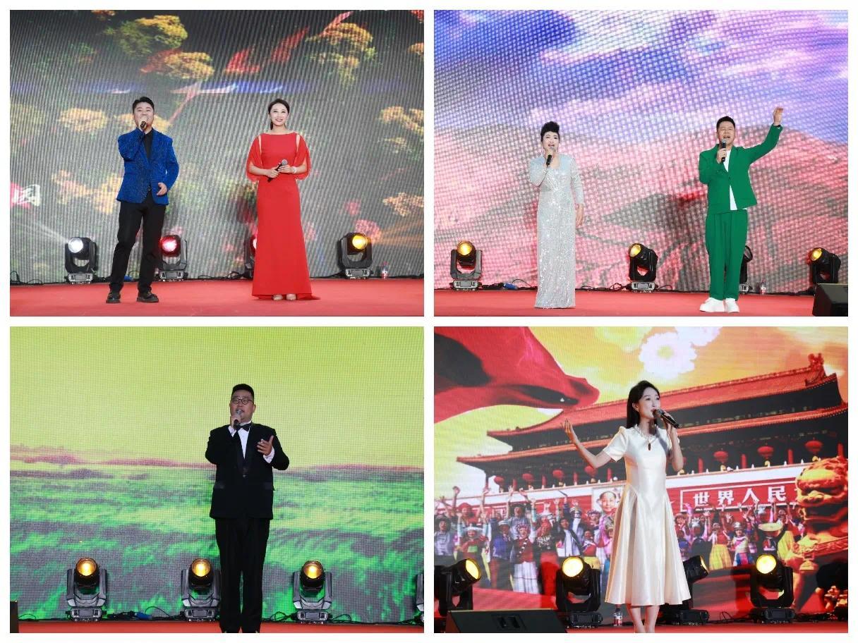 山东歌舞剧院以一曲《繁花似锦》拉开帷幕,民乐声声穿透麦田,古老乐器与现代编曲的碰撞激荡出乡村振兴的蓬勃朝气。国家一级演员、山东省直系统“五一”劳动奖章获得者李迎春倾情献唱《江山》《上春山》两首经典作品,浑厚嗓音与起伏麦浪相和,既展现“江山就是人民”的宏大叙事,又以灵动旋律勾勒出春山叠翠的田园画卷。第十七届中国文化艺术政府奖文华大奖获得者田瑞雪携《少年壮志不言愁》《千万次的问》两首时代金曲登台。充满张力的演绎将奋斗豪情与人生哲思娓娓道来,引发不同年龄层观众的情感共鸣。中国音协会员、央视《星光大道》特邀评委闫寒献唱《厚道山东人》《展翅飞翔》,既彰显“好客山东”的人文特质,又以昂扬旋律唱响新时代齐鲁儿女的奋进心声。《在希望的田野上》《我和我的祖国》等经典曲目接连唱响,既有对乡土记忆的深情回望,也有对乡村振兴的炽热呼唤。压轴时刻,穹顶之下骤然掀起澎湃音浪。几千双炽热的眼眸望向同一方向,几千副滚烫的喉嗓共振出《歌唱祖国》的壮阔声潮。手臂汇成波涛起伏的节奏之海,歌声乘着麦香扶摇直上。此刻所有澎湃的心绪都在共振,把最诚挚的祝福和最美好的期盼送给亲爱的祖国母亲。