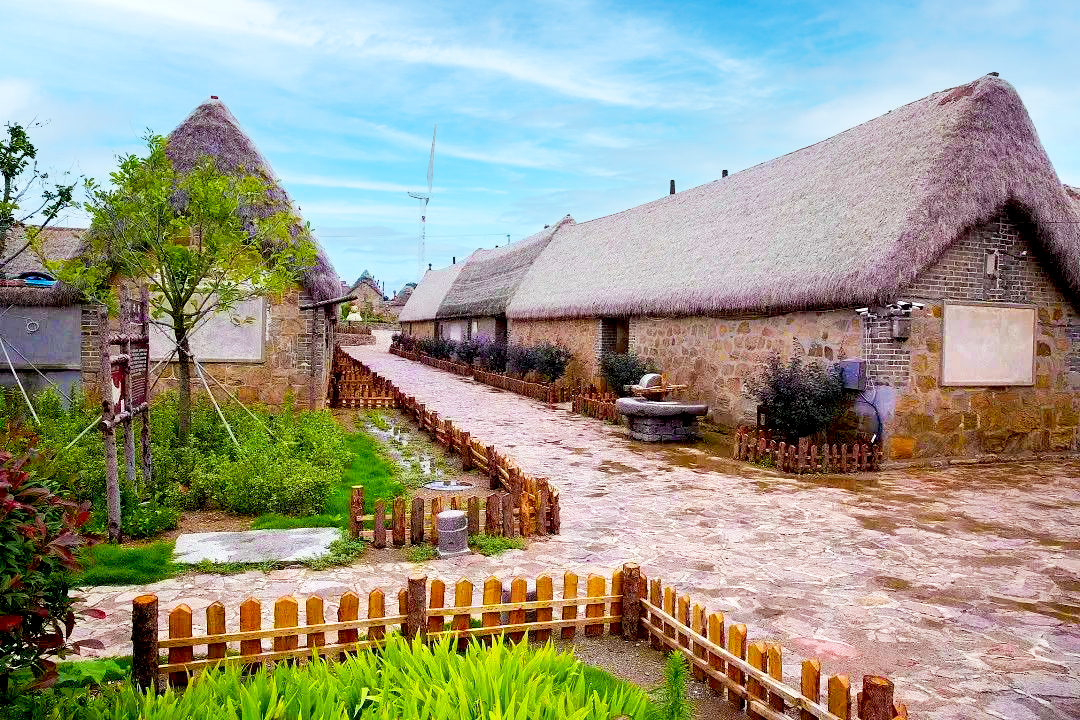烟墩角村入选了2024年世界“最佳旅游乡村”,自然风光与海草房是它的两大“流量密码”。进入小村,200多栋海草房静静矗立在海边,这些海草房中,年限最长的已有300多年历史,是胶东沿海最具特色的渔家民居。