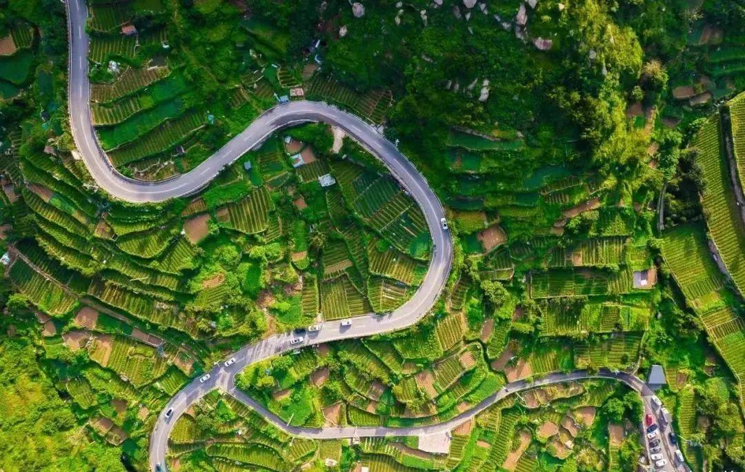 梯田、茶园、渔港、海湾等元素共同构成了一幅如诗如画的山海画卷。从高处俯瞰,村落被青山环绕,延绵至海边,景色壮丽。村内的茶园梯田层层叠叠,与渔村建筑相映成趣。