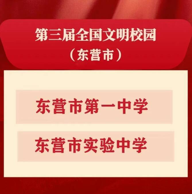截至目前,东营市共有4所学校获评全国文明校园,除本届获评的两所学校,东营市胜利第一中学、东营市春晖小学也均复查确认继续保留全国文明校园荣誉称号。