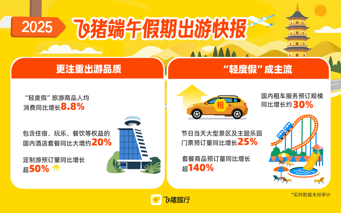 数据显示,今年端午假期,包含住宿、玩乐、餐饮等权益的国内酒店套餐同比大增约20%,定制游预订量同比增长超50%。