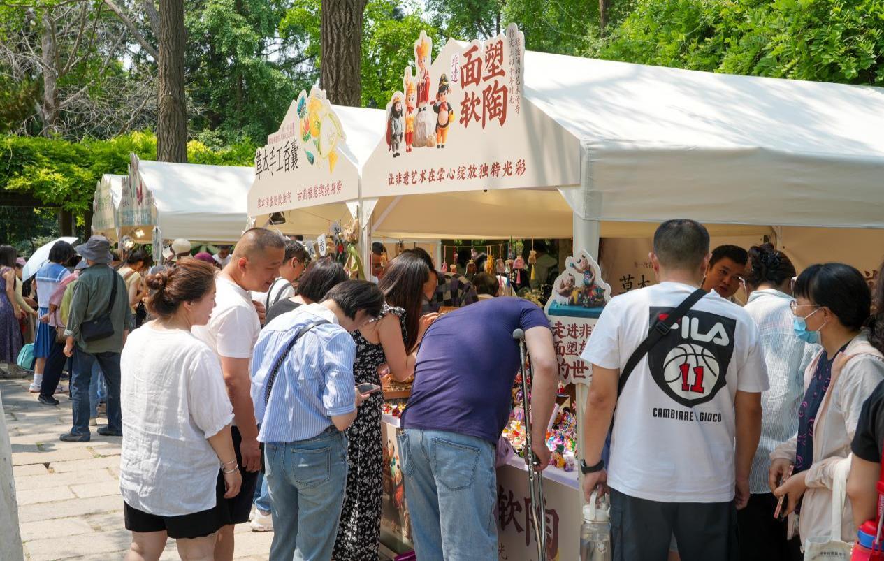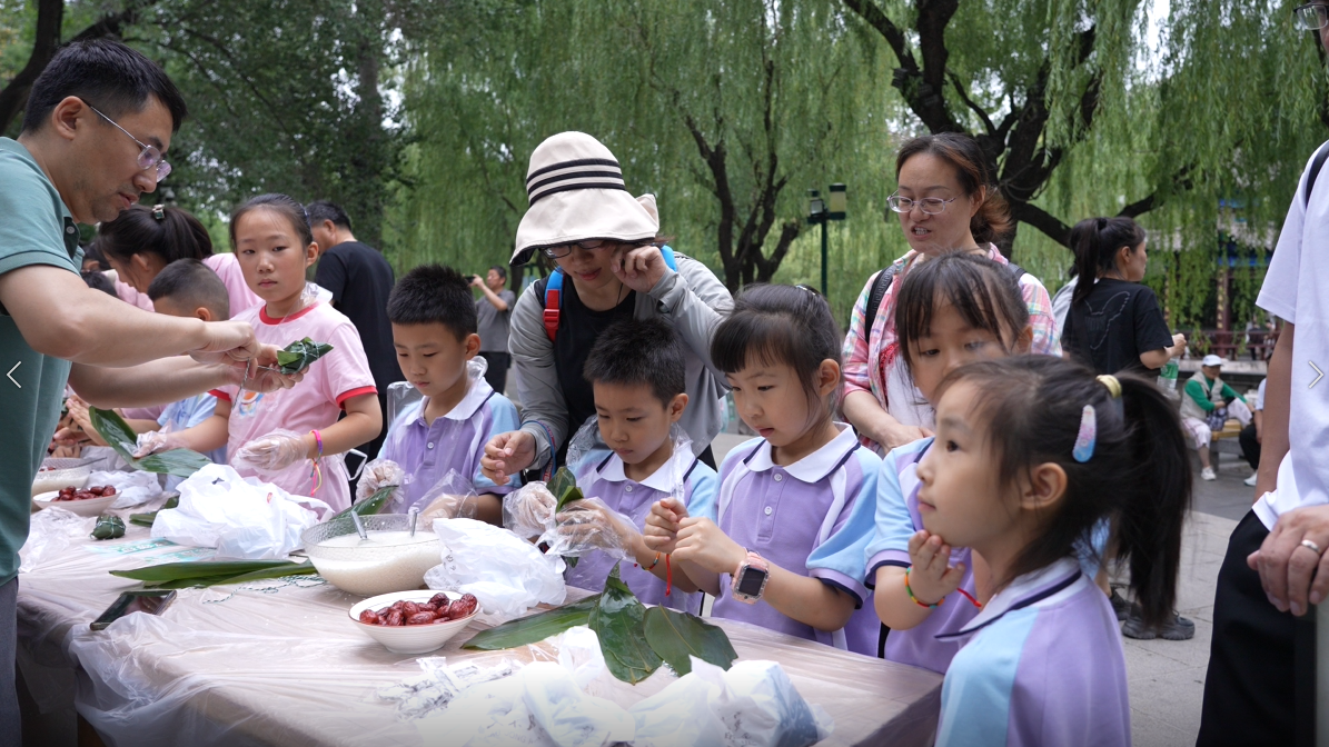 五龙潭公园以“艾满龙潭 民俗雅集”为主题,打造可赏、可玩、可吃、可体验的民俗雅集,令市民游客大开眼界,大饱口福。粽香甜品挑逗游客味蕾,琳琅满目的民俗手工艺品展现非遗传承人的匠心工艺。端午节的互动体验区,游客还能亲手参与艾草花束、香包、端午龙船风铃的制作,在DIY中感受“安康”寓意,让传统文化在指尖传承。