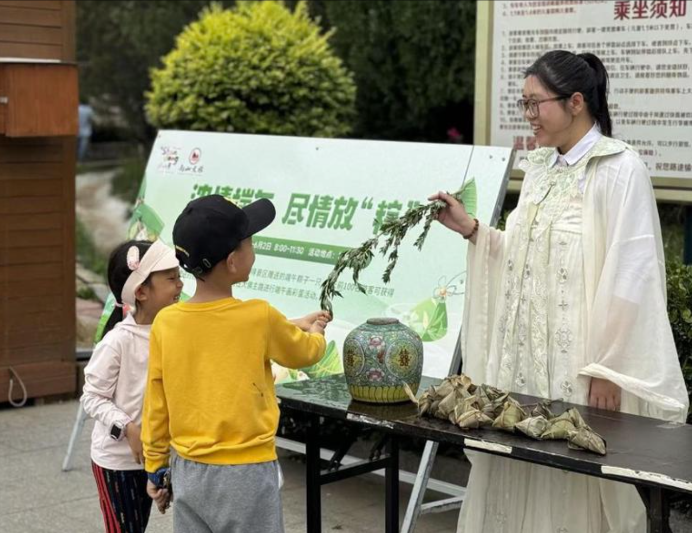 龙口南山旅游景区推出“艾香悠悠·童趣端午”系列活动,大佛主路画彩蛋、射“五毒”、汉服游园等传统项目同步上演,搭配《庆端午》国风舞蹈与新国风民乐演奏,让游客感受千年节俗魅力。栖霞太虚宫首届龙舟表演暨亲子游园会成为焦点,长春湖龙舟竞渡、非遗舞龙巡演、道长领学八部金刚功等活动轮番登场。