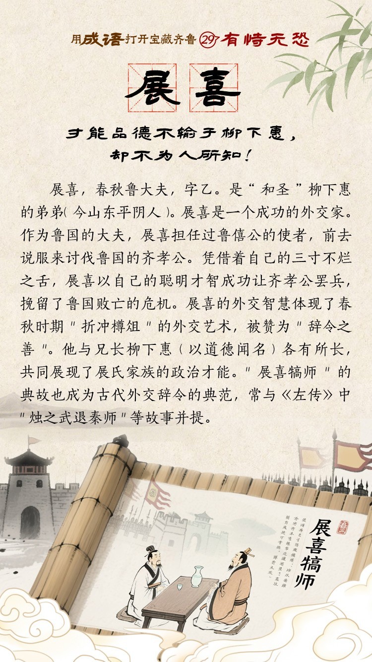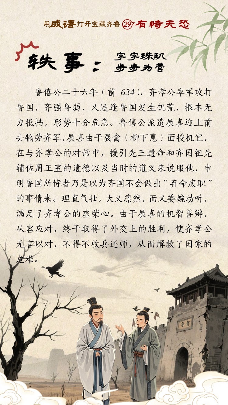 山东大地历史悠久、人文深厚,历史上名人辈出,许多成语深受齐鲁文化浸润和影响,背后有着诸多齐鲁文化元素。这些成语典故或出自孔孟儒家经典,或发端于古老的齐鲁大地。