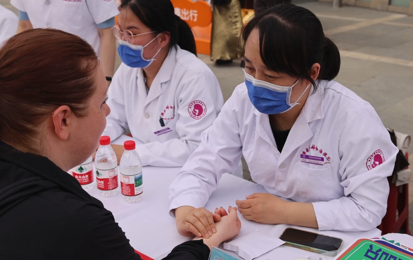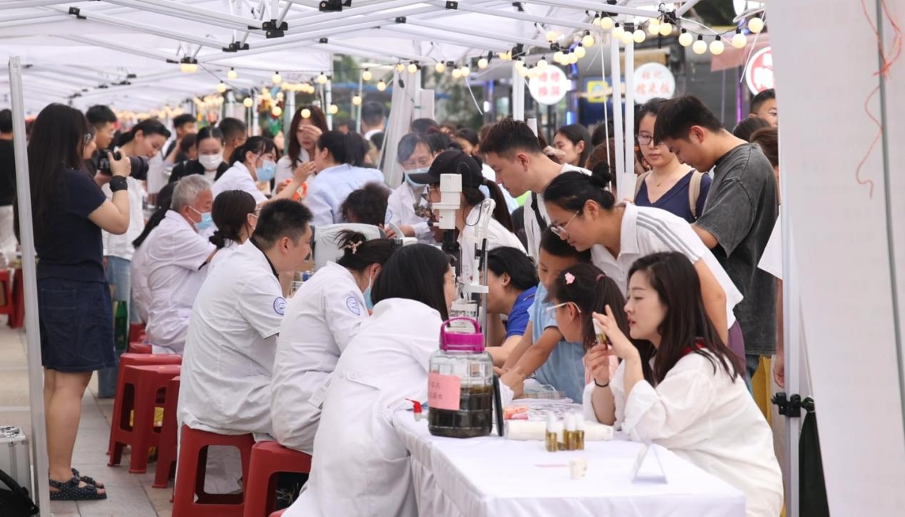 活动现场,来自不同国家的外国朋友,在各个专区前驻足流连。在工作人员的讲解下,他们详细了解中医药知识,观看艾灸、推拿等中医传统技法展示,按耐不住内心的激动,纷纷上前体验,神奇的中医药疗法,让他们忍不住直呼:“Amazing!”除此之外,他们还在市集上品尝了膏方、制作了香囊,拍照“打卡”留念,记录下这难忘的瞬间。珂琳,一位来自俄罗斯的外教老师,在体验过把脉、耳豆疗法后,她兴奋地说:“中医药文化夜市这个活动非常棒,虽然之前多次听过中医,但这是我第一次亲身体验,现在对中国文化有了更直观地了解!”