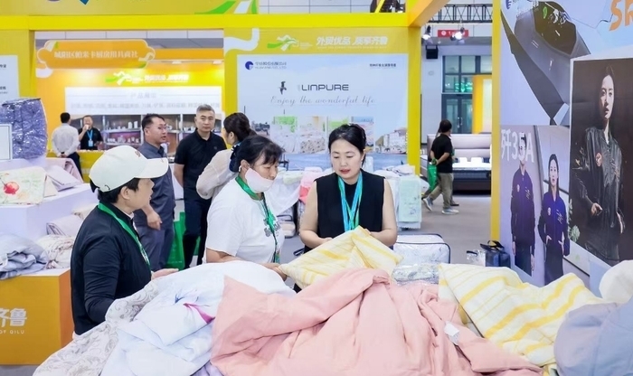 2元的亚麻坐垫、30元的床单、50元的夏凉被……6月5日,“2025山东省外贸优品购物季”第三期“建材家居、家电厨卫类外贸优品购物节”在山东国际会展中心5号馆启幕,上千款高品质建筑装饰材料、家具、家用电器及卫浴厨具产品在此汇聚,满足家庭装修、厨房升级、起居生活全链条需求。