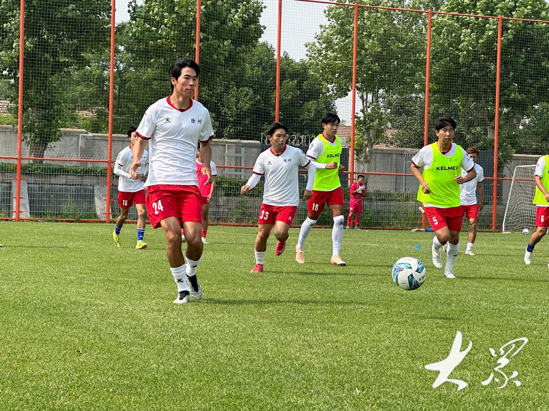 第三次来鲁封闭集训,以中超标准踢“苏超”的徐州队,受到广大网友和球迷关注。6月7日,大众新闻记者在位于潍坊的山东鲁能泰山足球学校(下称“鲁能基地”),见到了正在训练的徐州队。烈日骄阳下,他们全力备战。