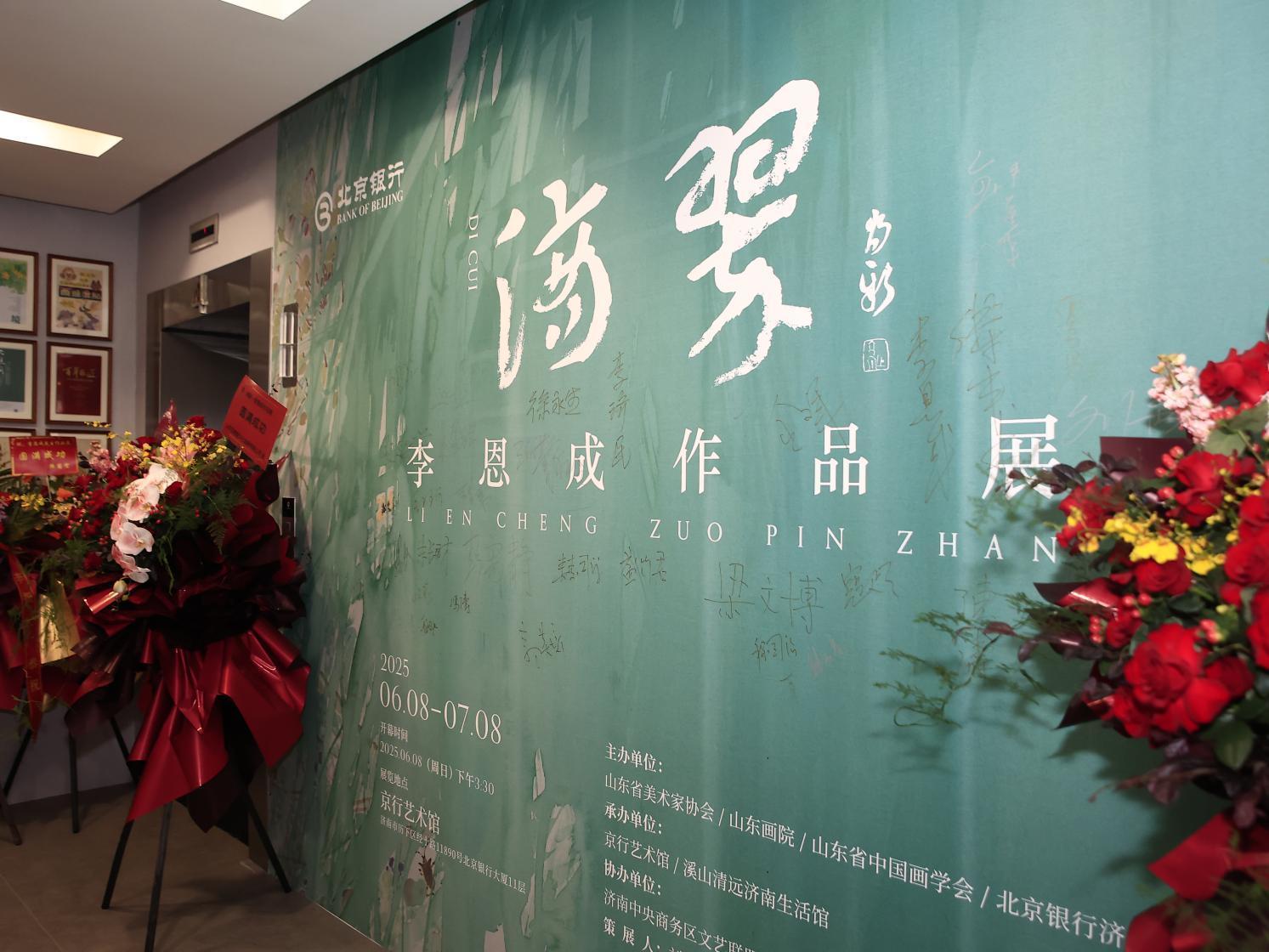 6月8日下午,由北京银行济南分行、山东省美术家协会、山东画院、山东省中国画学会共同主办,京行艺术馆(济南馆)承办的"滴翠—李恩成作品展"在京行艺术馆(济南馆)隆重开幕。本次展览由济南中央商务区文艺联盟、《画说收藏》栏目组协办。此次画展开幕也是京行艺术馆(济南馆)重装升级后的首展,展期自6月8日持续至7月8日,集中展现了李恩成老师的100余幅作品。