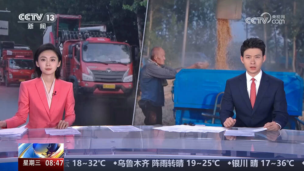 央视记者张琪在现场报道:“我现在是在滨德高速宁津出口,我发现有大量拉着履带式收割机的货车通过绿色通道,正络绎不绝地从高速路口驶出。”