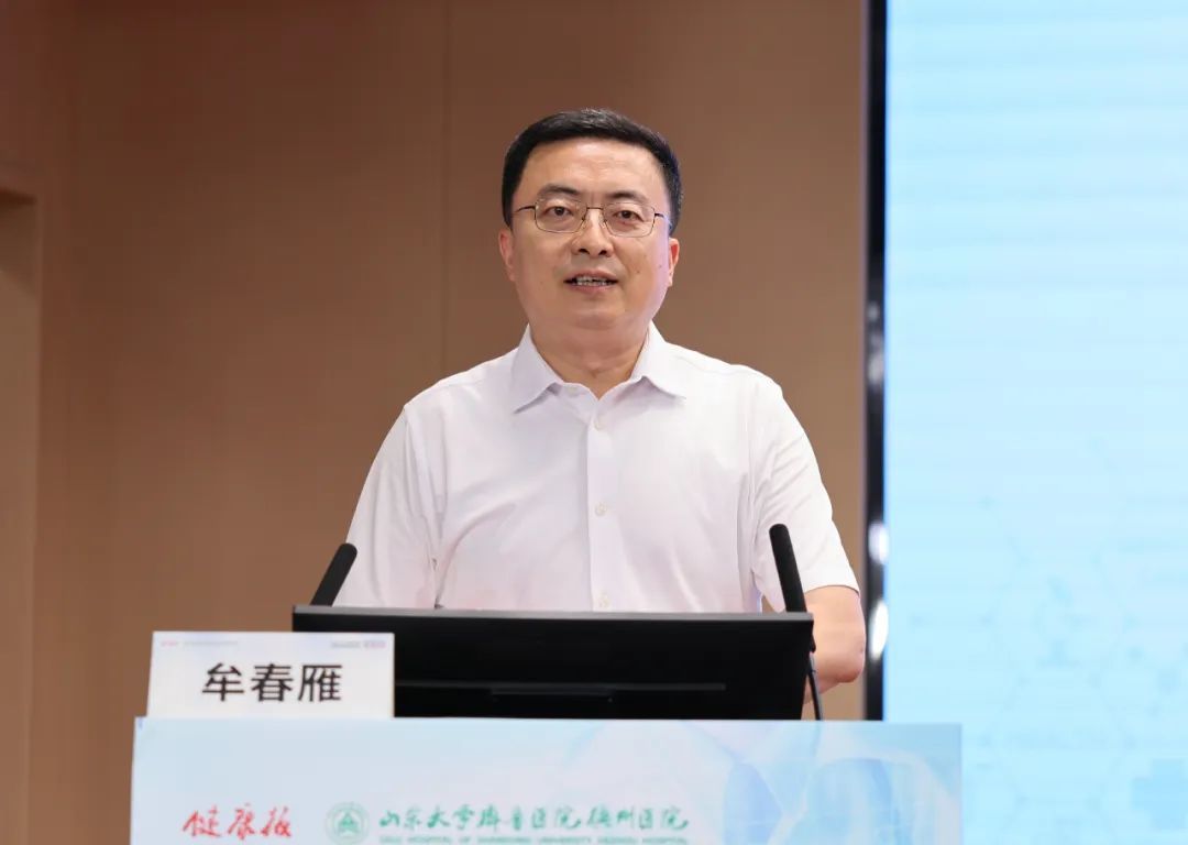 山东大学齐鲁医院党委书记陈鑫,德州市人民政府党组成员、副市长牟春雁,山东省卫生健康委医政处处长杨晓帆分别致辞,对大会的召开表示祝贺,高度评价国家区域医疗中心建设的战略意义,强调要发挥项目协同优势,推进优质医疗资源扩容下沉,切实提升群众“家门口”就医的获得感、幸福感、安全感。