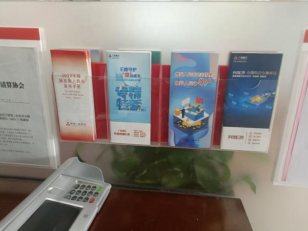 一是依托支行网点厅堂资源,在大堂及电子屏滚动播放“普聚金融服务,惠及千企万户”、“拒绝高利诱惑,远离非法集资”等信息。同时在支行营业室摆放“科技E贷、广发银行专精特新E贷”的宣传折页,通过对进入厅堂办理对公业务的客户进行宣讲,将优质的金融服务传递给普惠金融企业。