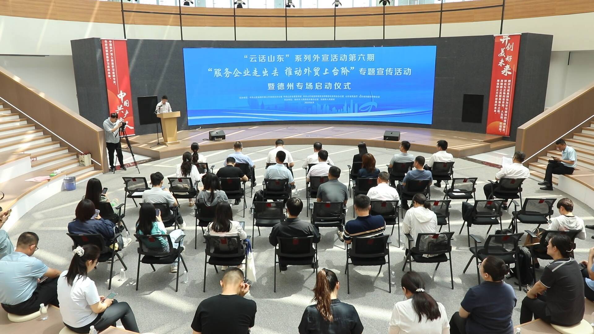 近日,“云话山东”系列外宣活动第六期——“服务企业走出去 推动外贸上台阶”专题宣传活动在德州市乐陵市正式启动。本次专题活动由山东省委外办联合省委宣传部、省委网信办、省商务厅、省侨联共同主办,将持续至今年11月。