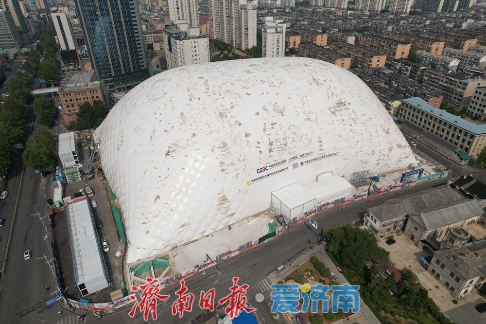 6月14日,济南“洪楼1905”项目迎来创新突破,全市首个气承式基坑气膜成功安装。这一科技“穹顶”采用高强度PVDF膜材,利用气压差形成无柱空间,兼具防尘降噪功能,并配备智能温控系统确保环保施工。相比传统模式,该技术可有效抵御天气影响,其滑移轨道设计能灵活覆盖作业面。济南日报·爱济南记者:王刚