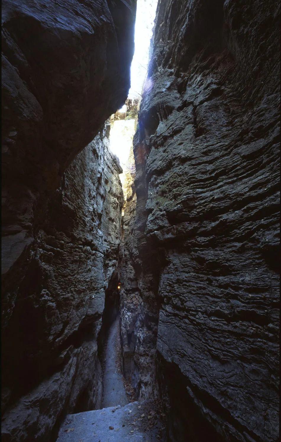 走进熊耳山地质公园的双龙大裂谷,凉爽的空气迎面扑来,谷内气温宜人,常年保持在18℃左右。两侧的岩壁像被巨斧劈开,最窄处仅容一人侧身而过,岩壁上岁月雕琢的纹路清晰可见,行走其间,仿佛在翻阅一部立体的地质史书。