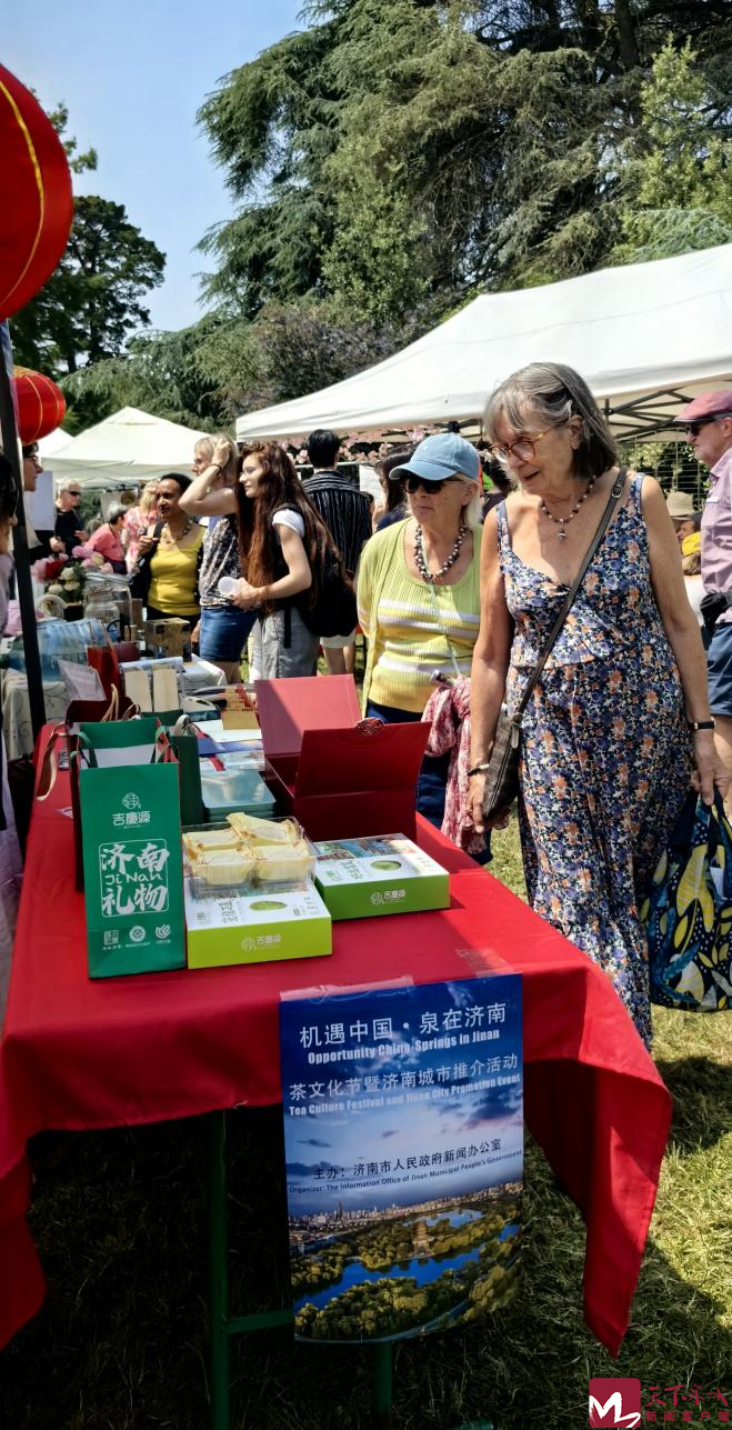 6月9日,“机遇中国·泉在济南”济南城市推介活动亮相法国雷恩市茶文化节活动。在雷恩市莫尔帕公园内的济南园,中外茶文化爱好者、茶商和茶艺师等齐聚一堂,参加布列塔尼孔子学院举办的“茶和天下”文化交流会,感受交流分享茶文化的魅力。来自济南市的代表性茶叶产品、非物质文化遗产和具有泉城文化特色的文创展品吸引了众多当地市民参观。
