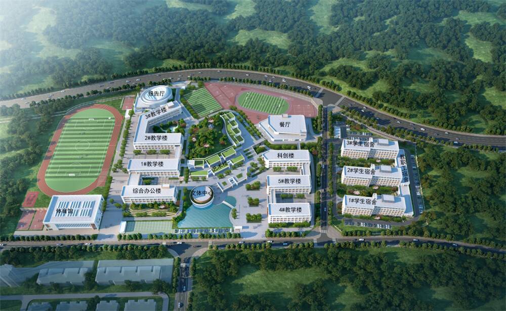 学校占地116953平方米,规划总建筑面积69472.4平方米,校园环境优美,整体建筑风格为自然与人文相融的花园式建筑。学校内图书馆、体育馆、礼堂等基础场馆设施完备,艺术馆、创客中心、科学实验室等特色空间应有尽有,充分满足学生从知识汲取、体艺培养到创新实践的多层次发展需求。