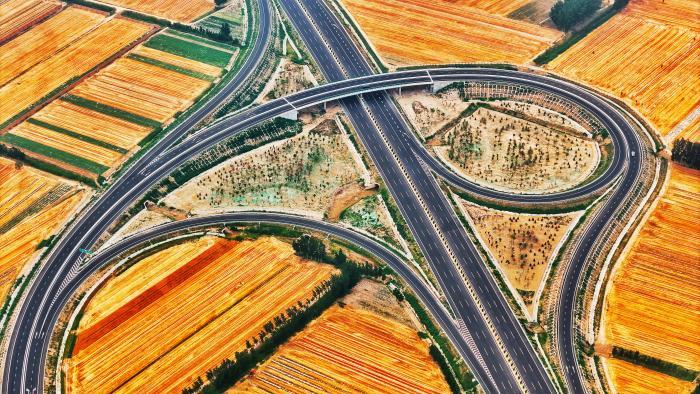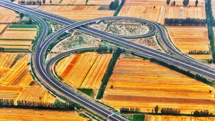 无人机航拍滨州市惠民县东吕高速、高商高速、庆章高速一带的麦田,仿佛是一曲夏日田园乐章。