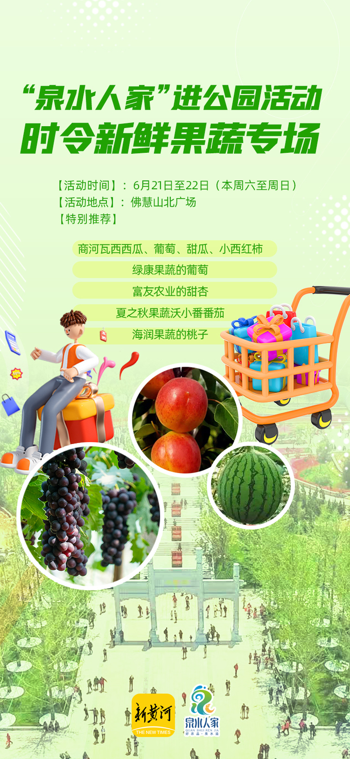 夏日炎炎,济南市各种新鲜时令果蔬开始大量上市。为进一步加强产销对接力度,“泉水人家”携手20家授权企业,50多种优质农产品,本周六、周日将在佛慧山北广场开启为期两天的农产品盛宴。其中有商河瓦西西瓜、葡萄、甜瓜、小西红柿;绿康果蔬的葡萄;富友农业的甜杏;夏之秋果蔬沃小番番茄;海润果蔬的桃子等等。让市民在攀山游玩的同时,也能品尝到“泉水人家”新鲜时令果蔬,感受乡土气息。