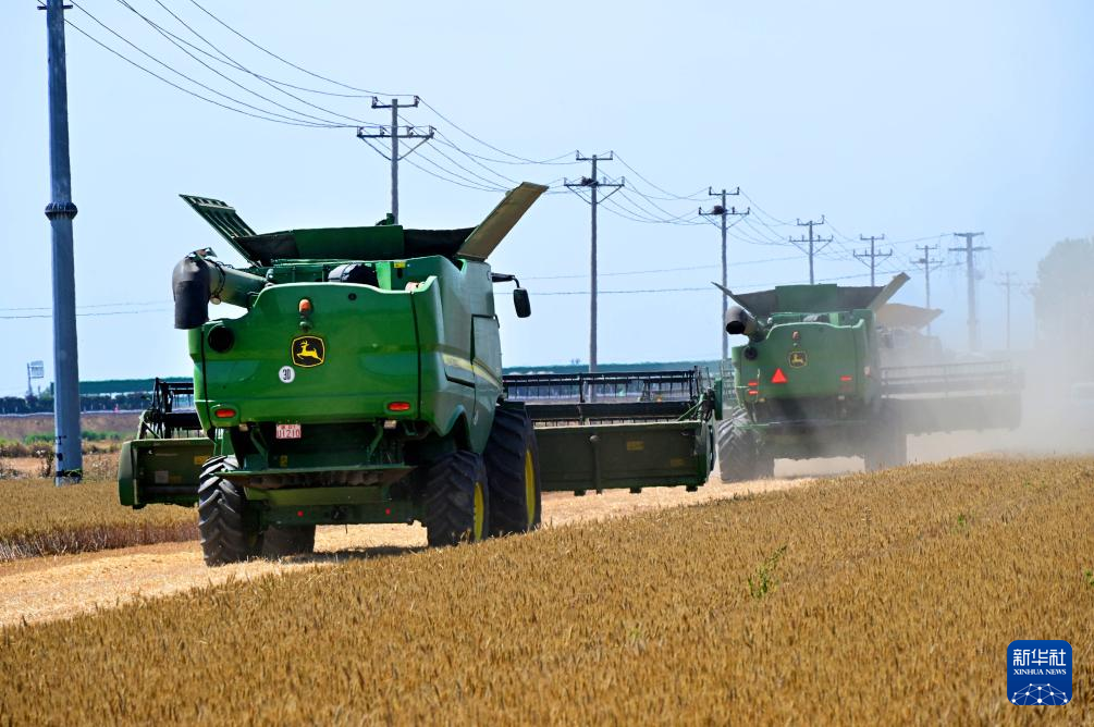近日,山东省青岛市小麦收获作业全面展开。当地农业农村部门调度6500余台联合收割机投入“三夏”作业,多措并举保障小麦收割顺利进行。