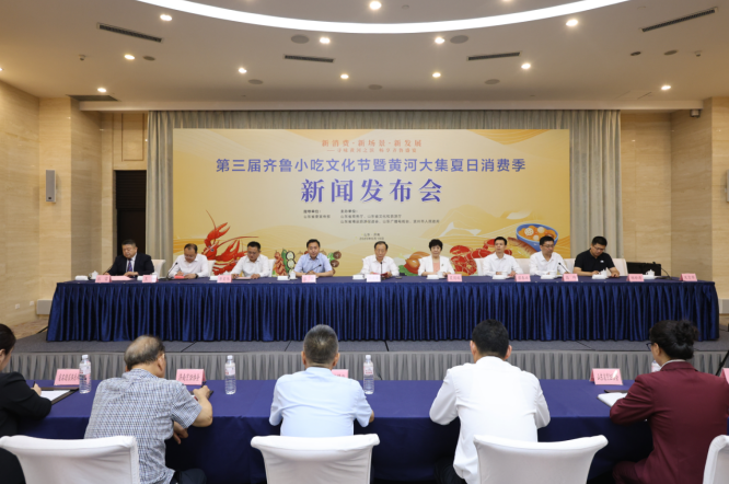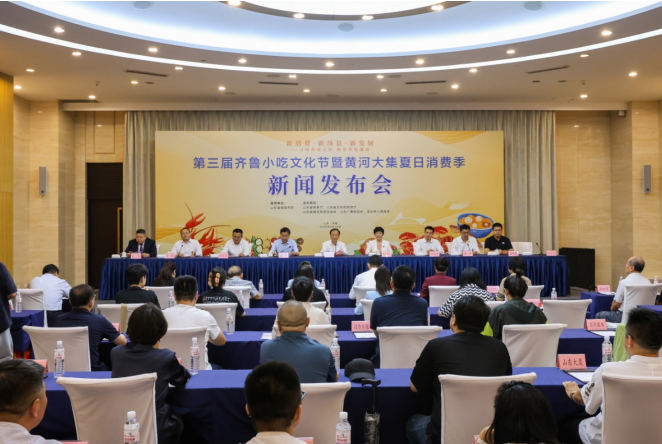 6月19日,由山东省委宣传部指导,山东省商务厅、山东省文化和旅游厅、山东省精品旅游促进会、山东广播电视台、滨州市人民政府主办的“第三届齐鲁小吃文化节暨黄河大集夏日消费季”新闻发布会在济南成功召开。