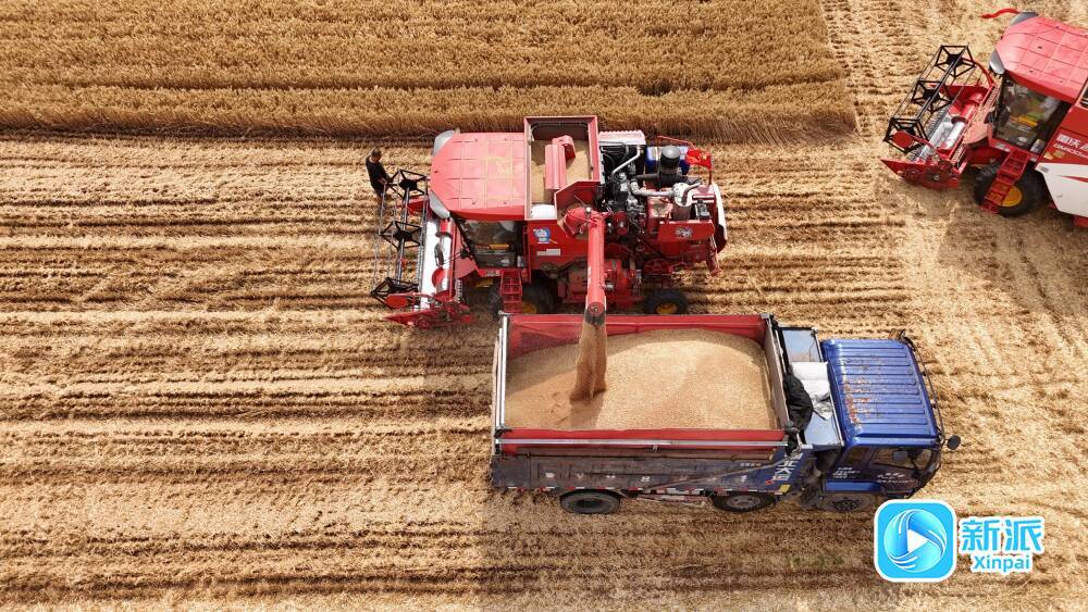6月18日,在潍坊高密市柴沟镇郝家村“潍麦12”千亩示范方内,收割机在金色的麦浪中来回穿梭,脱粒、装车一气呵成,空气中弥漫着麦香,潍坊市农业农村局组织专家组正对小麦种植户张子步种植的“潍麦12”地块进行实打测产。