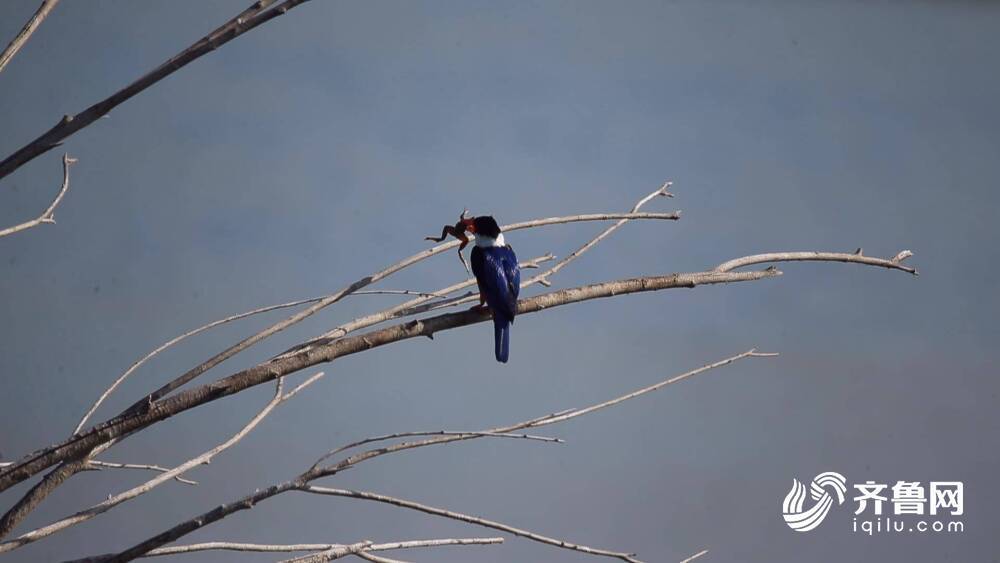 近日,摄影师在东平湖拍摄到鸟界“蓝精灵”蓝翡翠捕猎青蛙的珍贵画面。 蓝翡翠鸟属于国家二级保护动物,主要以小鱼、虾、蟹和水生昆虫等水栖动物为食,也吃蛙类和鞘翅目、鳞翅昆虫及幼虫。(闪电新闻记者 王迅 孙淑燕 摄影 李涛 泰安报道)