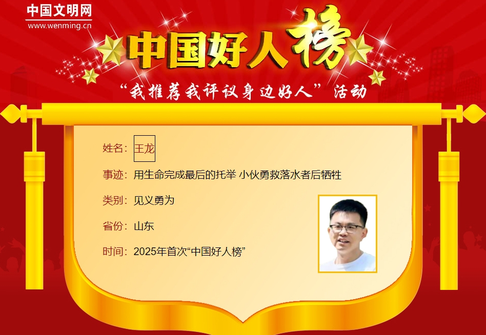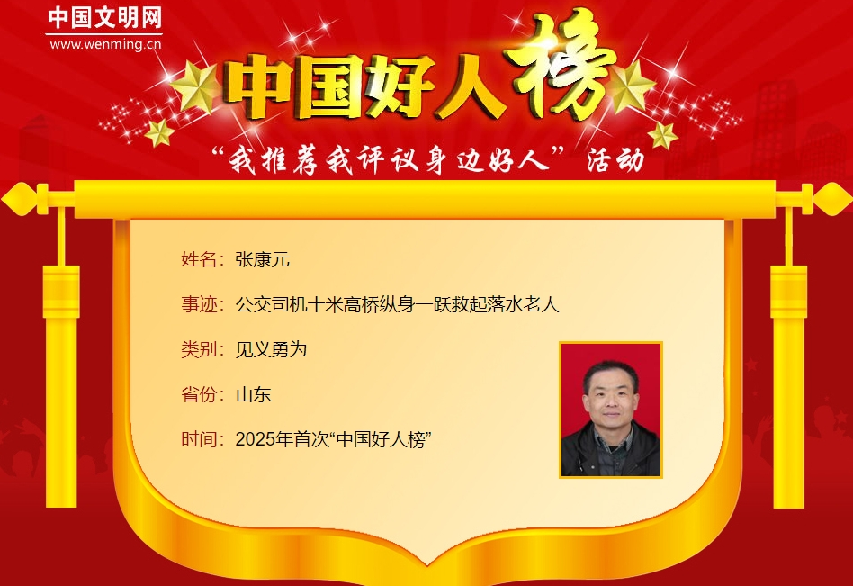 6月24日,2025年首次“中国好人榜”发布仪式暨全国道德模范与身边好人现场交流活动在河南省安阳市举办。经各地推荐、网友评议和专家评审等环节,共有152人(组)助人为乐、见义勇为、诚实守信、敬业奉献、孝老爱亲身边好人光荣上榜。其中,山东有12人光荣上榜。