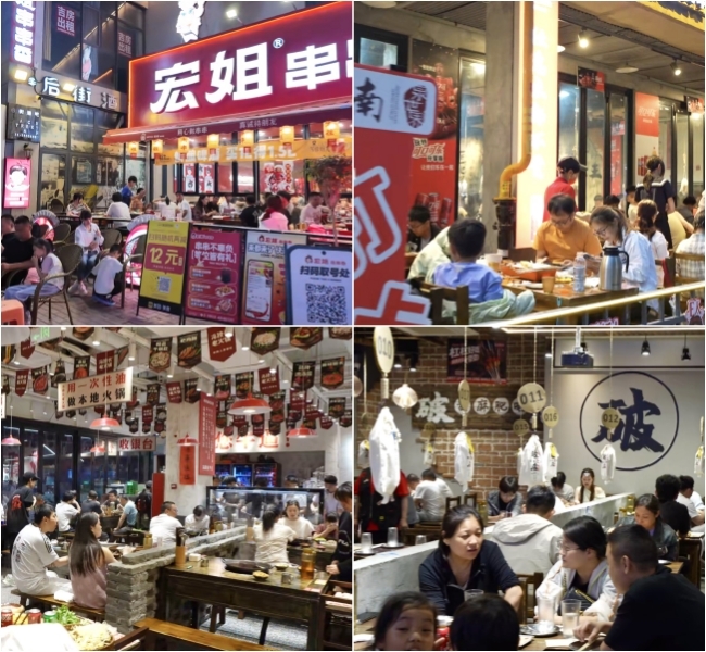 烧烤区的烟火气更是旺盛。老胖串店里,几十张桌子座无虚席,烤架上的肉串滋滋冒油,撒上孜然和辣椒面,香气瞬间勾住了行人的脚步;老金烧烤的后厨里,师傅正用长柄炭烤叉翻动着肉串,“我们专注传统老济南风味,肉质鲜嫩无膻味,炭火慢烤,撒上秘制干料,很多人从小吃到大。”破店肥哈的工业风店铺里,年轻人正举着手机拍摄“甜麻肥蛤”的热气,蛤肉肥美饱满,嗦一口就上头,搭配着烤玉米和拍黄瓜,成为朋友圈里的“夏日顶流”。