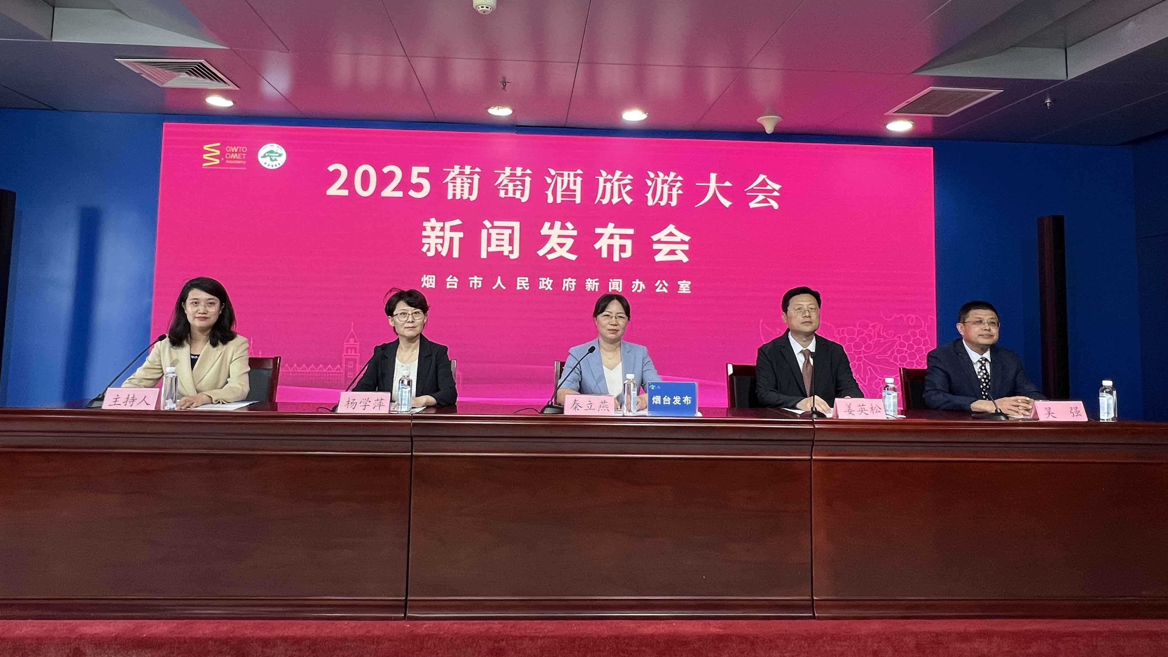 6月27日,烟台市政府新闻办举行新闻发布会,介绍2025葡萄酒旅游大会总体情况。烟台市商务局副局长秦立燕,烟台市葡萄与葡萄酒产业发展服务中心主任姜英松,烟台市人民政府外事办公室副主任杨学萍,蓬莱区工信局党组副书记、区葡萄与葡萄酒产业发展服务中心主任吴强出席发布会并回答记者提问。