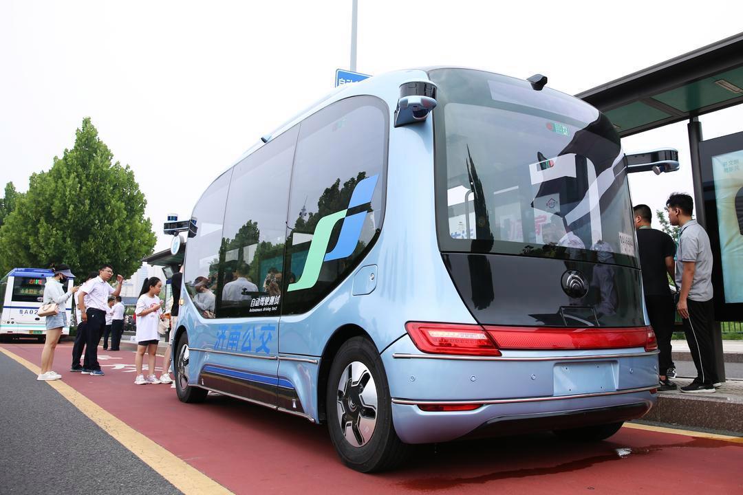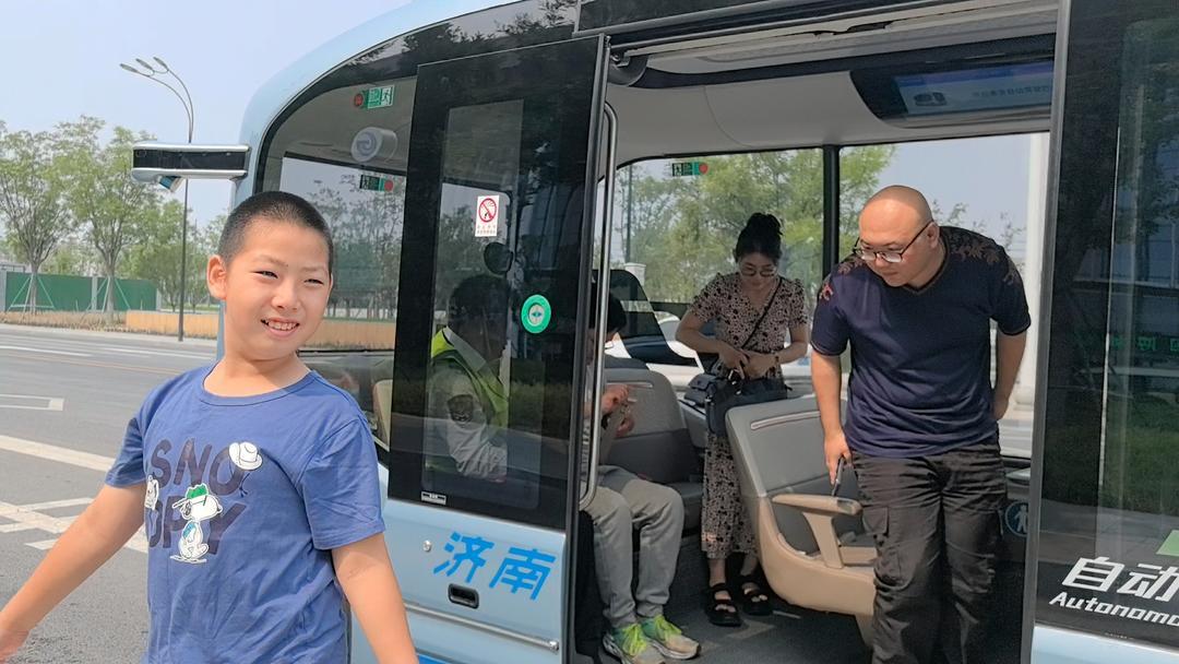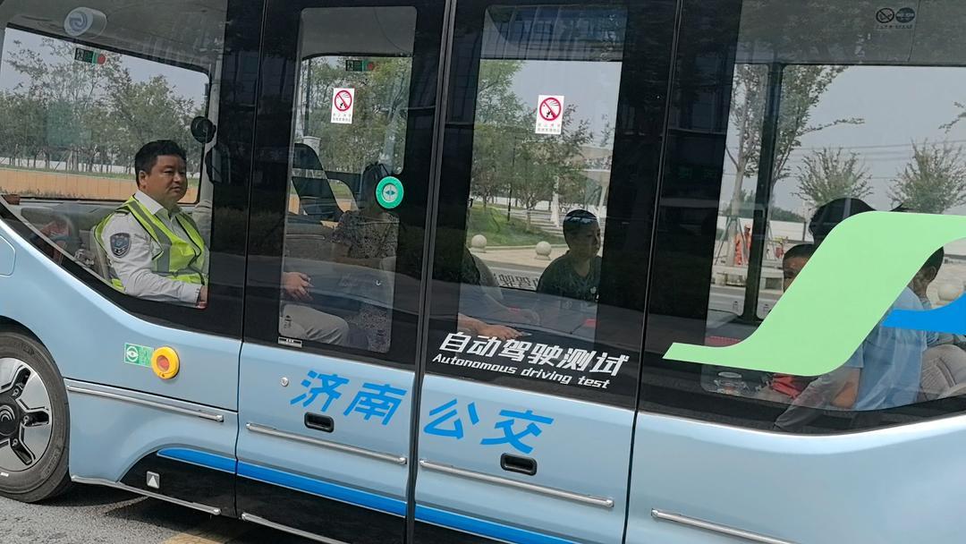 经过前期近一年时间充分的道路测试与验证,济南市首条L4 级“自动驾驶”智能网联公交线路——智能网联公交2号线于6月28日正式向市民乘客开启预约体验。上午9时,在黄河国际会展中心公交站,记者与其他8名市民一起,作为首批乘客体验了济南首条L4 级自动驾驶公交车。