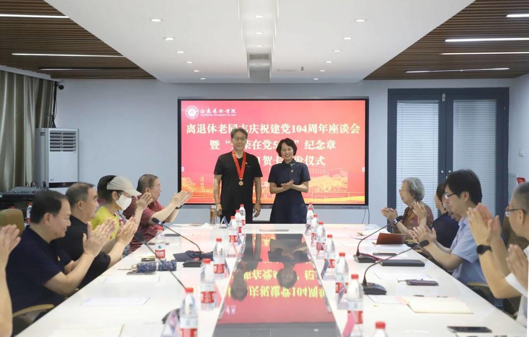 据山东艺术学院网站消息,6月26日上午,学校在文东校区举行离退休老同志庆祝建党104周年座谈会暨“光荣在党50年”纪念章、政治生日贺卡颁发仪式。学校党委书记徐梅等出席座谈会。