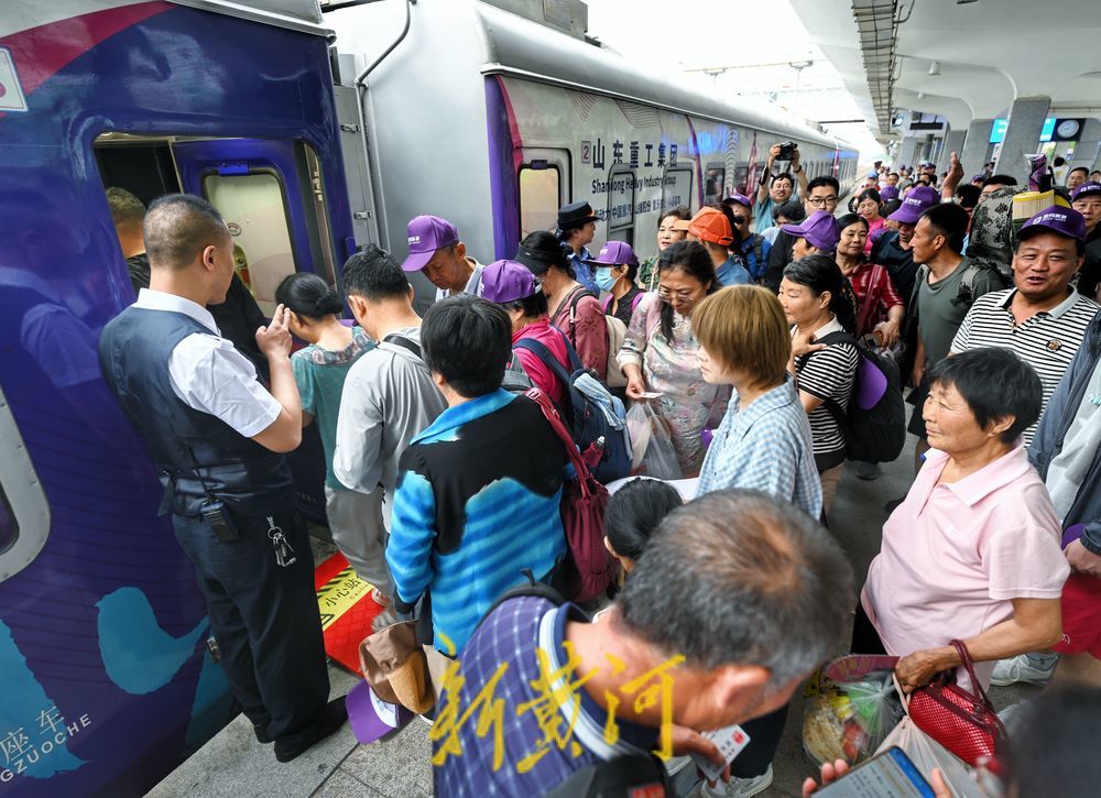 今年暑运,国铁济南局与泰安、东营两地文旅部门联动,把车站站台和列车车厢作为展现齐鲁文化的“第一窗口”,设置“石敢当”卡通玩偶、特色主题打卡点、非遗展示点,吸引游客驻足拍照互动。旅客凭车票便可享受“泰山+惠游套票——旅游专列定向套餐”,以及旅游景区、星级饭店等各类消费场景优惠政策,享受到一份诚意满满的“好客山东”文旅大礼。