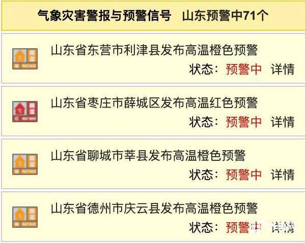 山东发布71个高温预警 临沂、枣庄、潍坊发布高温红色预警