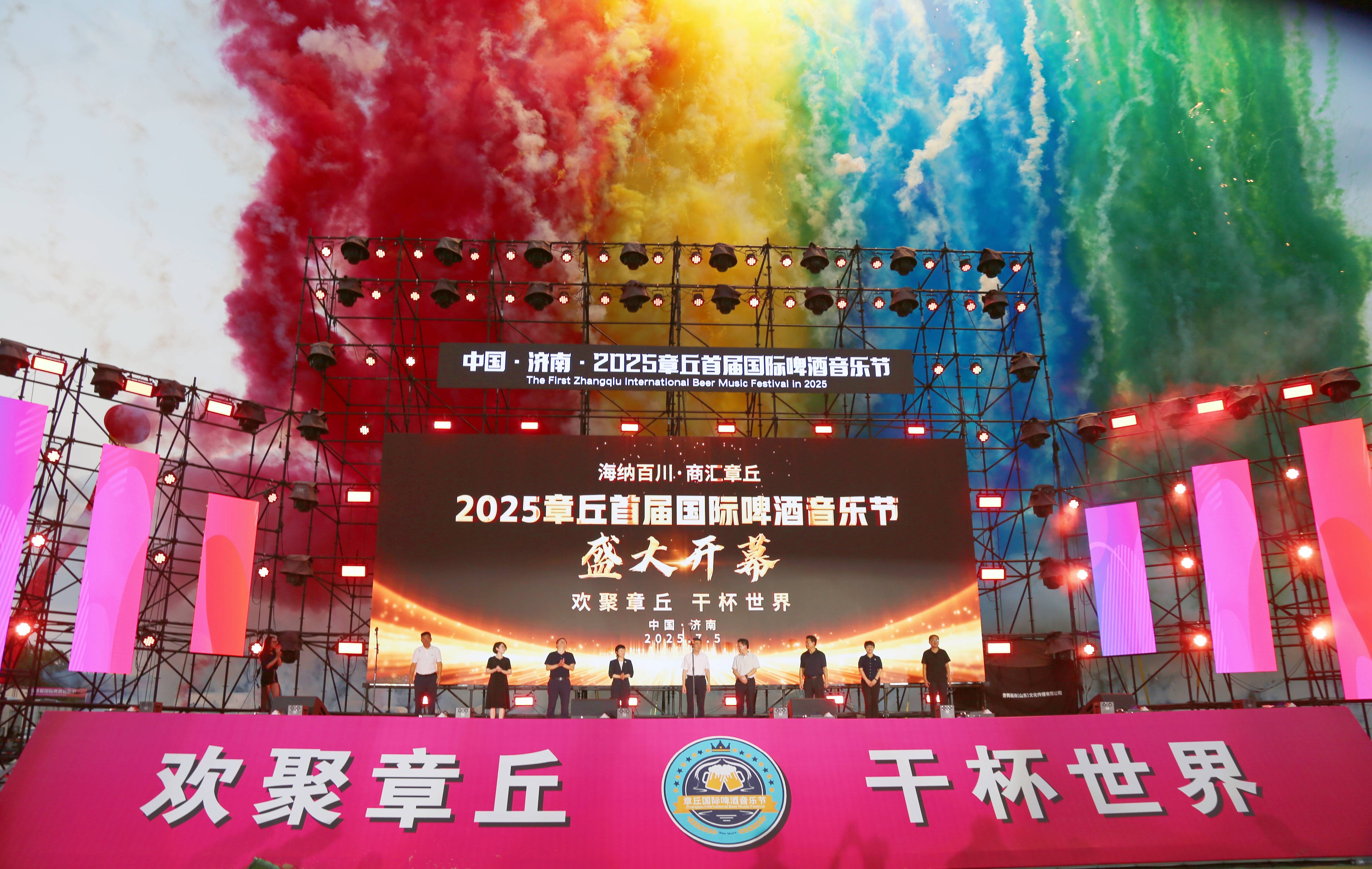 随后,与会领导共同上台,携手启动了中国济南2025章丘首届国际啤酒音乐节。随着启动装置的启动,现场烟花绽放、掌声雷动,标志着这场盛大的活动正式拉开帷幕!