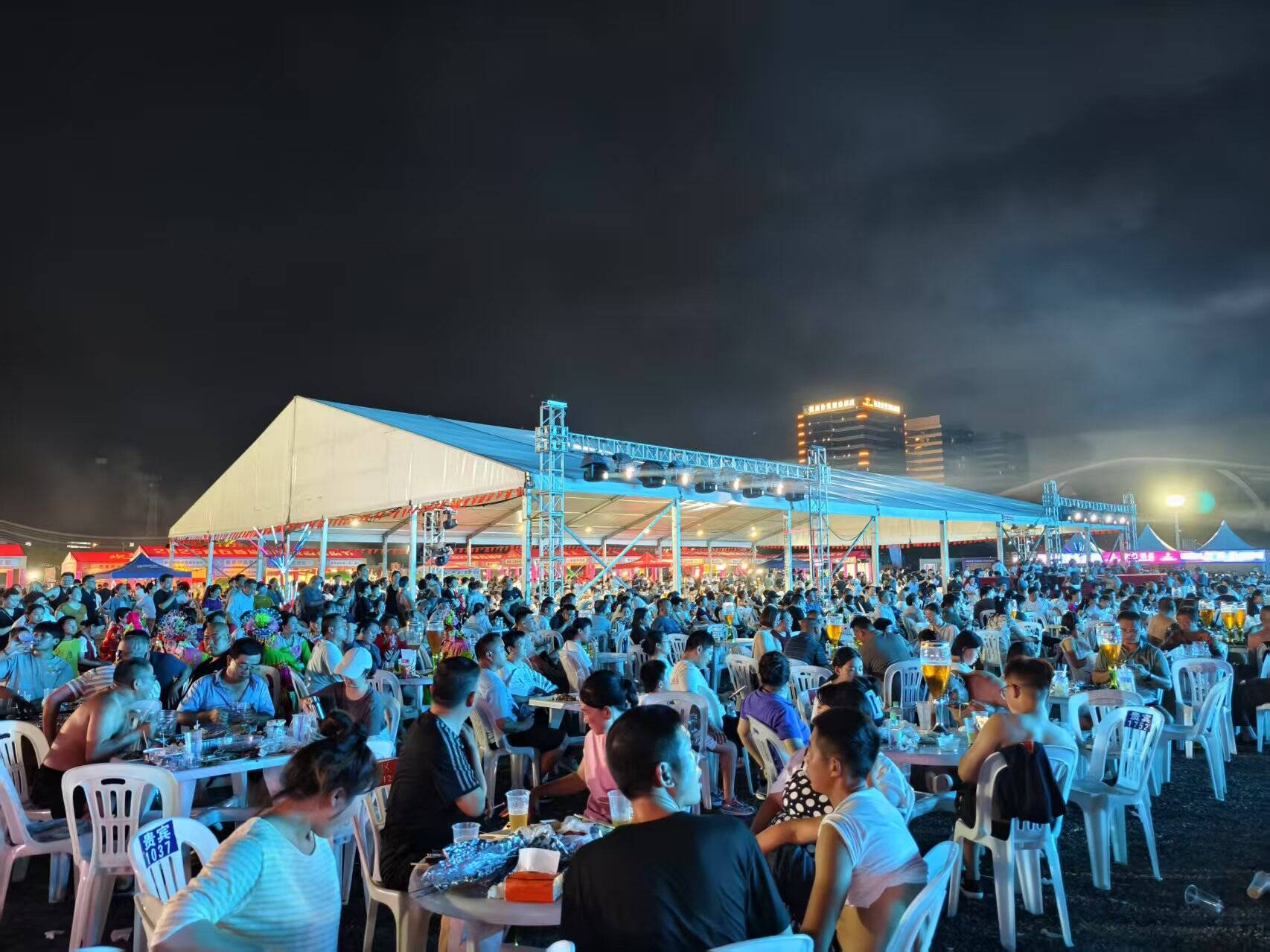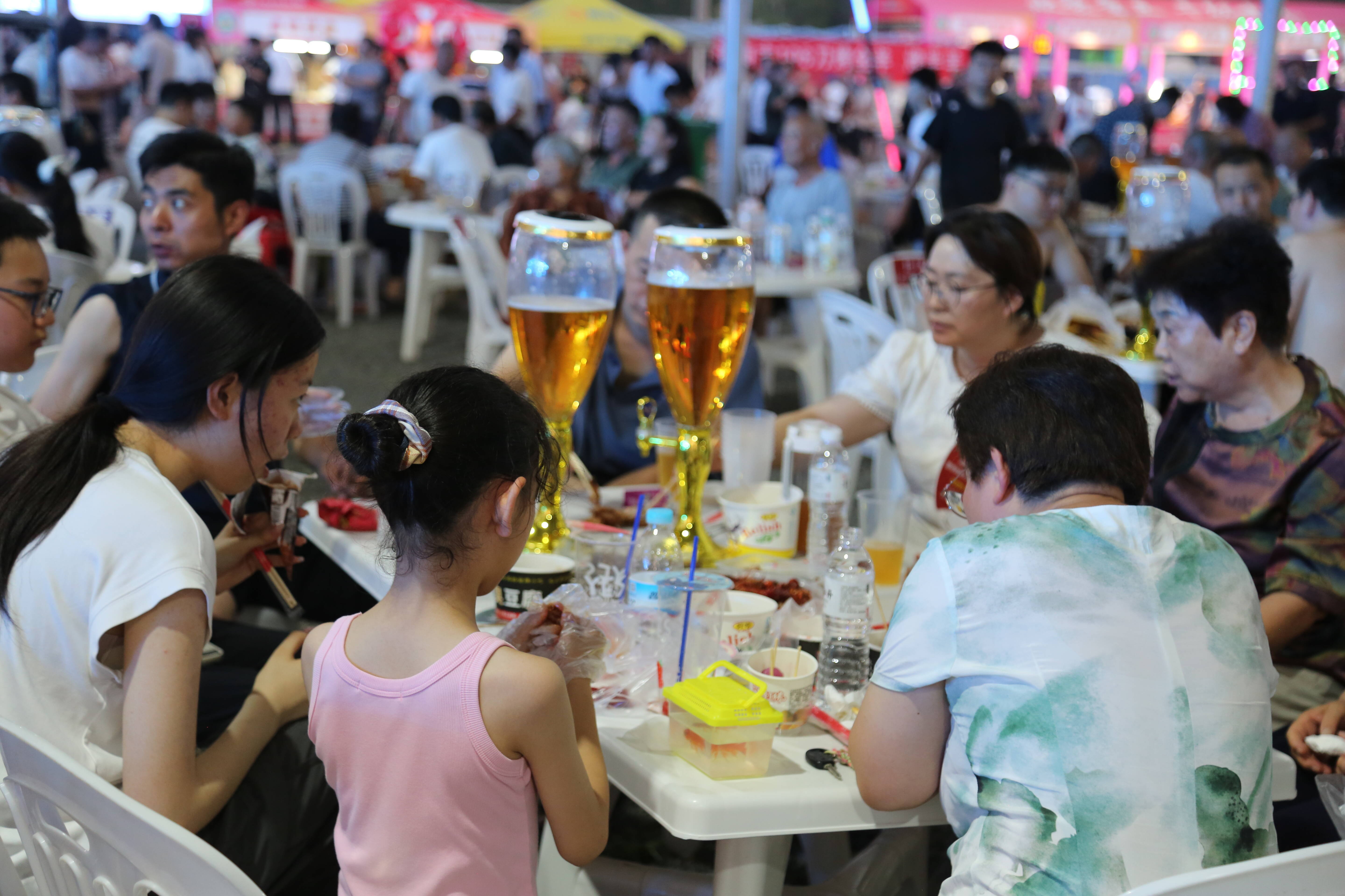 啤酒节现场可谓人山人海!炎热的天气中洋溢着活力四射的激情!或一家人品饮撸串,或三五好友畅怀开饮,或多年老友酌酒长谈,伴随着舞台前音乐的节奏和歌舞的摇摆,大家手中酒杯挥舞,尽享夏日的一缕清凉,欢笑声、音乐声、碰杯声此起彼伏,大家都沉浸在这场啤酒与欢乐的盛宴中,激情和活力四射。活动精彩处,大家纷纷举起酒杯,为章丘,也为自己的人生尽情喝彩!