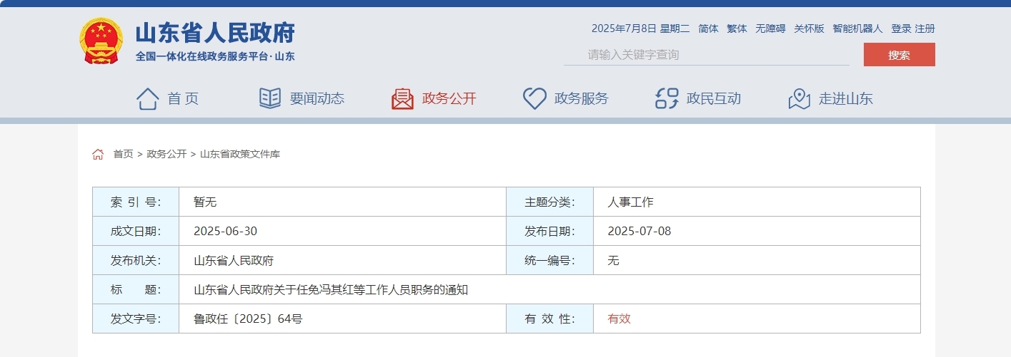 鲁政任〔2025〕64号