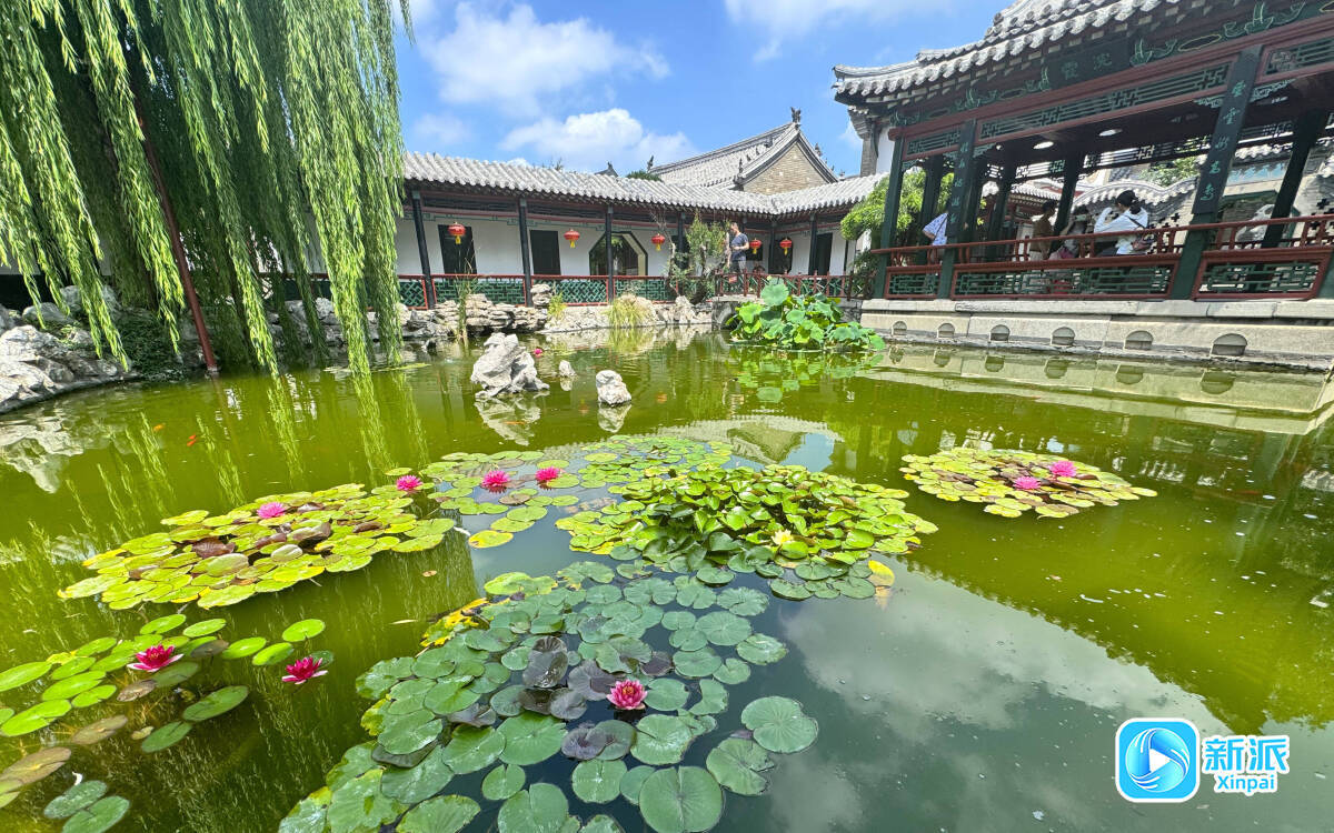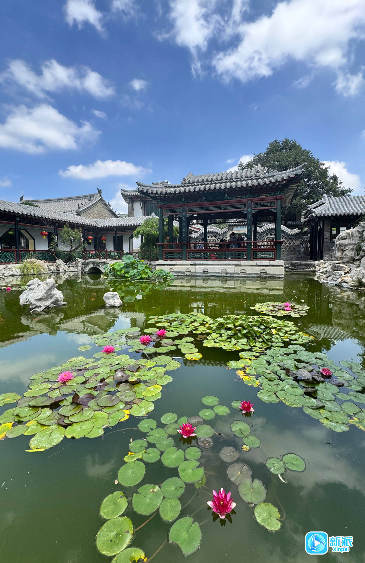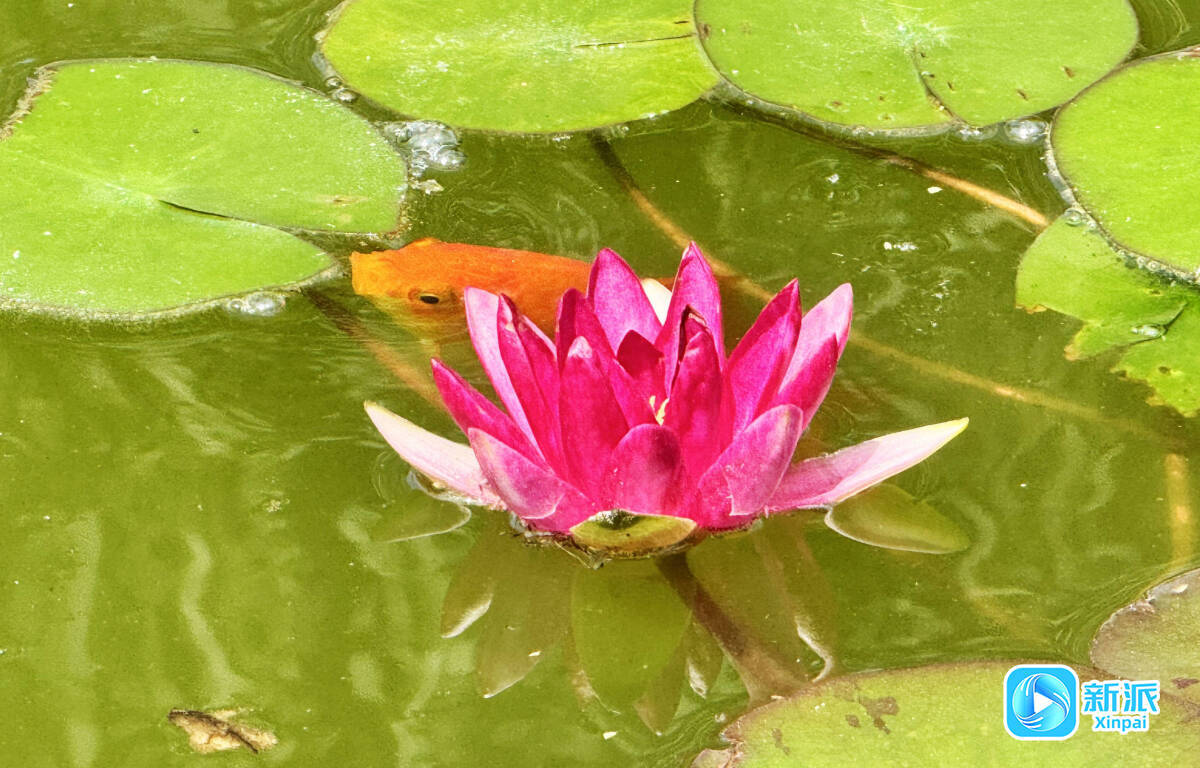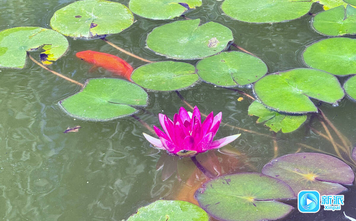 新派讯 盛夏时节,潍坊十笏园博物馆水面上的睡莲竞相绽放,花开正艳,楚楚动人,美不胜收。鱼儿在莲叶间嬉戏,形成了“鱼戏莲叶间”的景致,成为夏日一道美丽的风景。