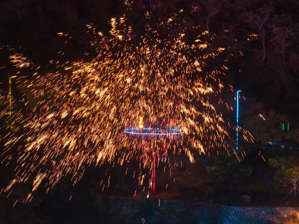 仙村入戏,狂欢升级,演艺不断。7月11日至8月31日,红叶柿岩7周5大主题,串联整个暑期,周周狂欢不重样。美食周鲁菜之源碰撞东南亚风味,热带雨林秘境中畅享舌尖盛宴;魔术周将戏法、幻术融为一体,捕捉你的每一个“哇塞”瞬间;飞天火壶、非遗打铁花、鱼灯舞、陶琉技艺,非遗周传统绝技闪耀柿岩夜空;音浪加持,踏瀑戏水,泼水狂欢升维声光派对,泼天快乐已安排!喜剧周欢笑来袭,即兴喜剧互动收获笑脸盈盈,酷暑尽散,唯余欢潮。
