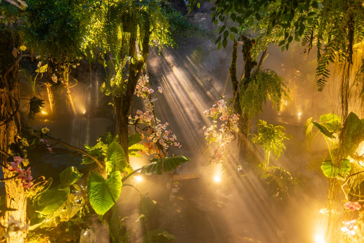 这个暑期,红叶柿岩夜游再度升级,柿岩仙村携云雾、绿植、流瀑焕新归来:芭蕉掩映,满目清凉,全新景观“瑶池仙瀑”惊艳亮相,曼妙光影环绕,百年古村摇身一变,化作仙气秘境,重现人间。