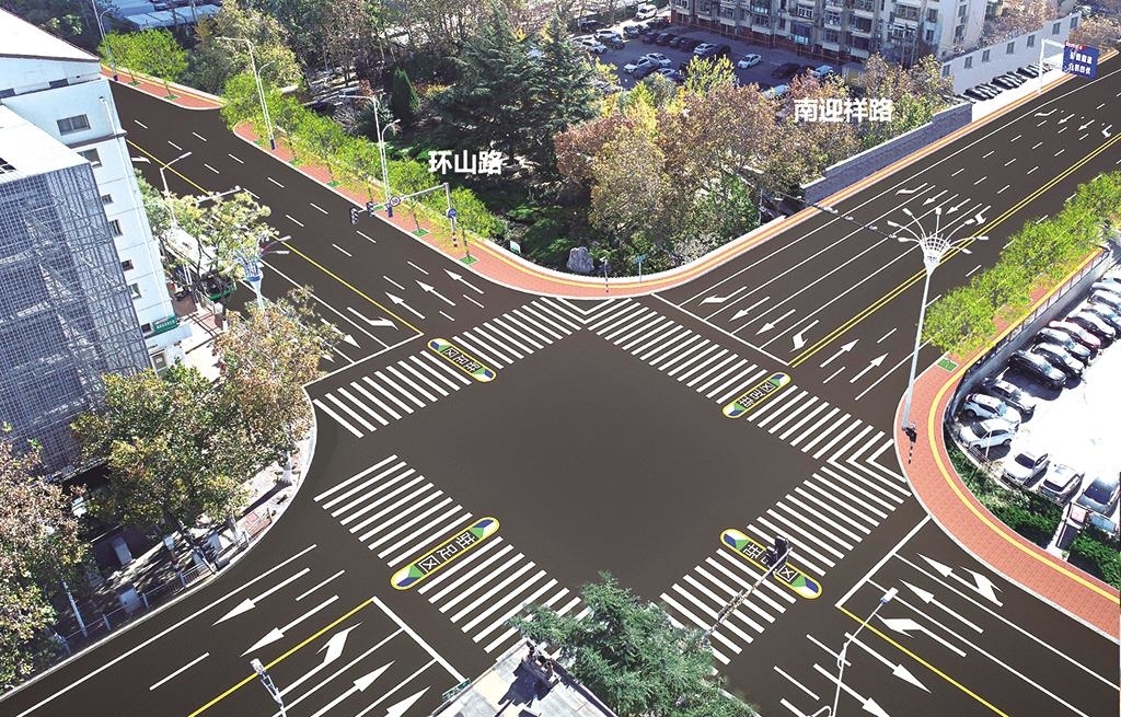 记者了解到,针对这一路口独特的拥堵情况,项目将在南迎祥路方向路口南侧120米范围,拆除现状侧分绿化带,增加1条右转专用道;环山路方向路口东、西两侧各80米范围,道路向南拓宽2.5米,增加1条汇入车道。此外,由于路口地势东高西低,常年的行车压力造成沥青路面和路基破损严重,必须要对现有沥青罩面进行铣刨后重做路基,系统提升路口远期的通勤承载力。此外,还将对雨水、污水、路灯、燃气、电力、通信等市政管线进行改迁。