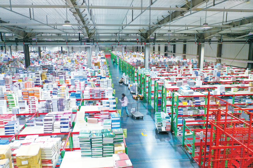 7月12日,工作人员在泰安新闻出版小镇图书仓库内整理书籍。 新华社发