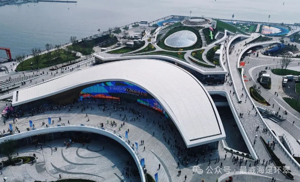 这座12万平方米的超级文体商旅中心,宛如一颗璀璨新星,点亮了威海的海岸线。其全国首创的大跨度拱结构,形似巨鲸脊骨破浪而出,将威海依山傍海的地理特质凝练为建筑语言。而这,只是威海中心城区商圈空间重构的一个缩影。