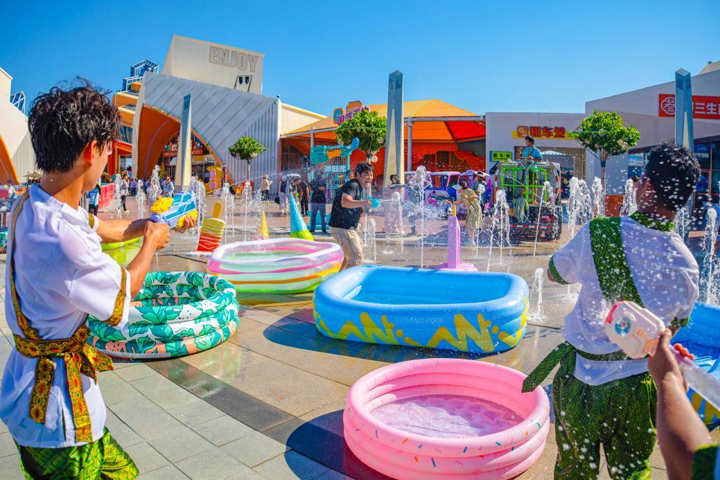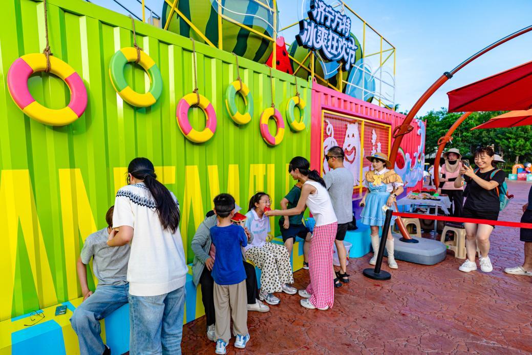 为让游客尽享水花飞溅的消暑狂欢,济宁方特打造多重泼水区域与互动体验,实现全天候湿身狂欢。“狂欢戏水区”以漫天水幕掀起湿身激战,“趣味戏水区”打造亲子戏水的童趣空间。更有“西瓜小镇”化身避暑胜地,游客可参与蒙眼吃瓜、凿冰寻宝、冰桶挑战三大游戏,让夏日暑气瞬间烟消云散。此外,双场巡游让泼水狂欢再度升级。主巡游“夏日水花大巡游”集结梦幻泡泡、水枪联盟与高颜值NPC男团等方阵,在行进式表演中泼洒欢乐水浪;微巡游“滋水小分队”则由高颜值NPC男团领衔快闪突袭,与游客零距离湿身互动。