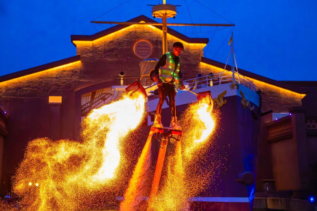 活动期间,乐园缤纷演艺活动持续放送。“飞天火壶”融合非遗火壶与水上飞人表演,带来水火交融的视觉奇观;“海狮欢乐秀”以萌趣海狮表演,为夏日游园增添无限乐趣;“心随乐动”“星河派对”“摸你黑”等互动演艺也将轮番上演,为游客带来沉浸式夏日狂欢盛宴。夜幕降临,“电音焰火派对”主题夜场演出闪耀登场,在DJ电音舞台、男团女团热舞与梦幻气球放飞仪式中,带领游客尽情释放夏夜激情;璀璨焰火秀每晚准时压轴登场,冷焰火瀑布倾泻而下,与主题焰火秀共同带来震撼的视觉盛宴。