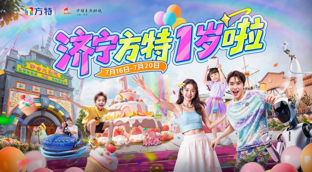 济宁方特喜迎开园一周年,7月16日至20日将推出“周年生日会”庆典活动,为游客带来多重活动加码与权益升级。届时,智能机器人天团将带来炫酷首秀,在迎宾、巡游、演出等环节点燃科技狂欢;游客还可领取周年限定徽章,七月生日的游客更有机会解锁专属礼遇。7月19日,济宁方特将举办盛大的“周年庆生仪式”,在白日焰火绽放的七彩烟幕下,定制生日蛋糕将惊喜亮相并在现场甜蜜派发,邀请游客与方特共庆一周岁生日。