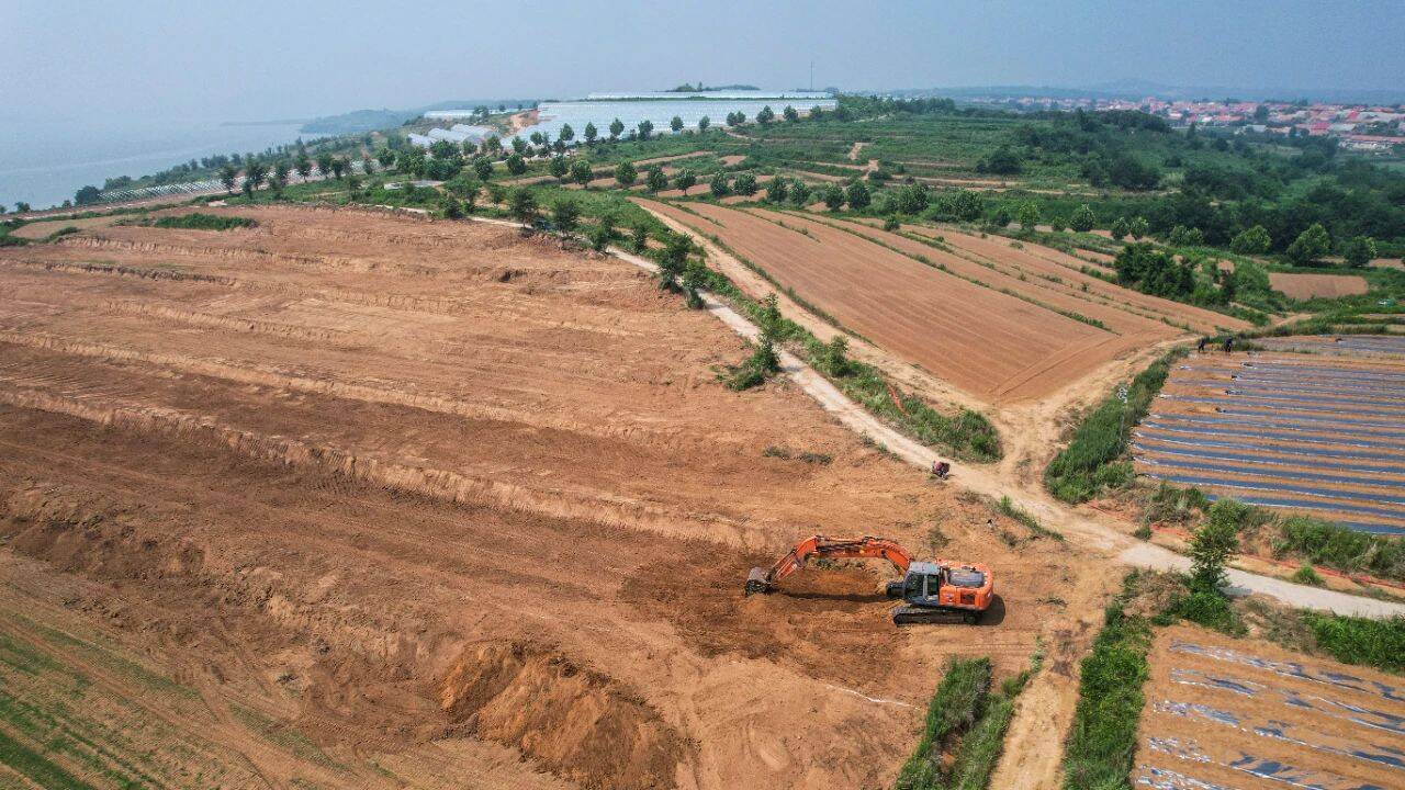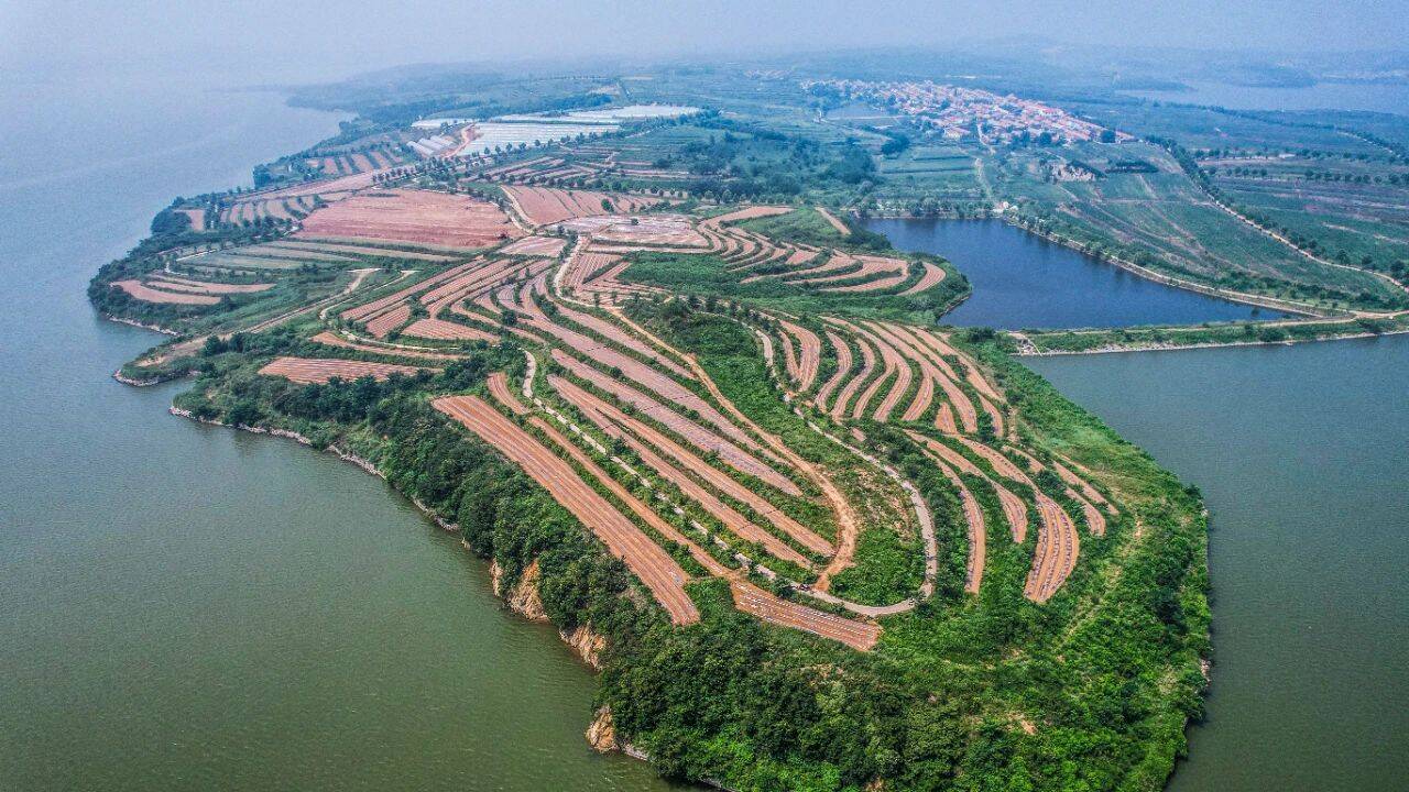 毗邻八河水库的东岛刘家村,有着充足的灌溉水源,非常适合大面积农作物种植。从空中俯瞰,一座座已经建好的果蔬大棚在阳光的照射下闪着银光。