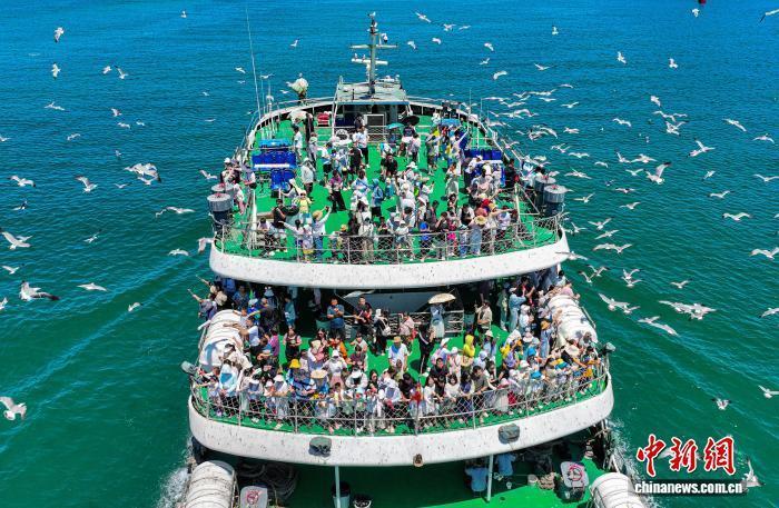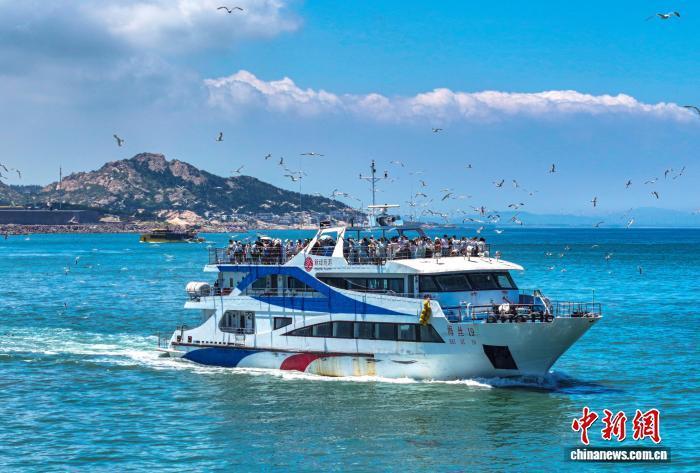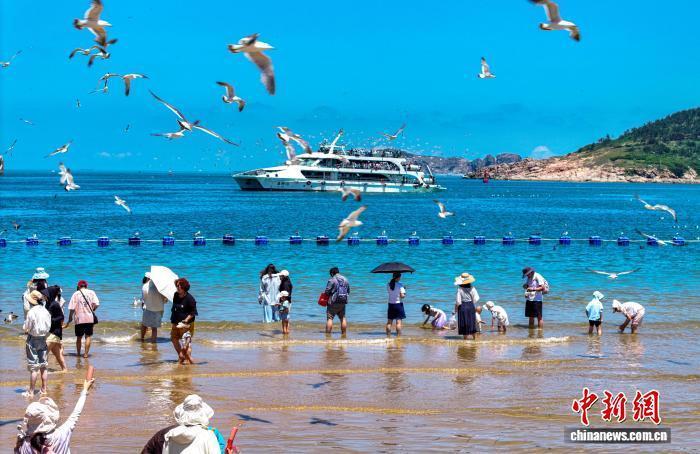 7月19日,山东省荣成市海驴岛迎来旅游高峰,游客在山海间享受夏日时光。当地近年来依托海岛资源,打造了海驴岛、鸡鸣岛等一批生态旅游目的地,暑期海岛旅游经济呈现火热景象。(无人机照片)李信君 摄