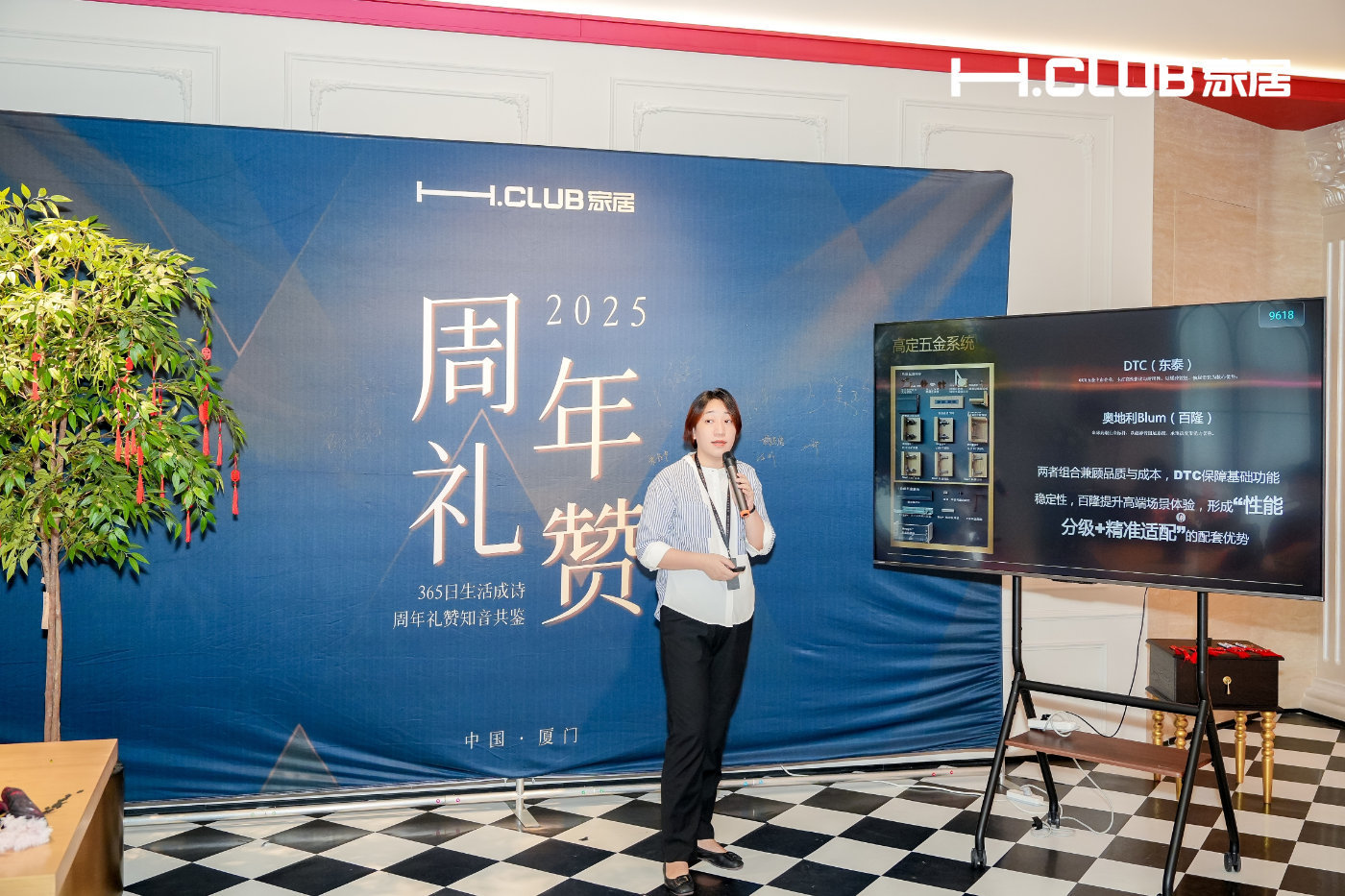 活动在厦门市场总监林妹女士真挚的欢迎辞中启幕。"感谢福厦家人的双向奔赴,让H.CLUB的设计哲学在闽地多元生活场景中生根发芽。"这番融合地域特色的开场,瞬间拉近了两地客户的情感距离。紧接着它向大家分享客户门的定制案例,期望能够继续与大家共同书写关于家的温暖叙事。