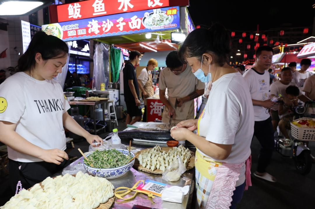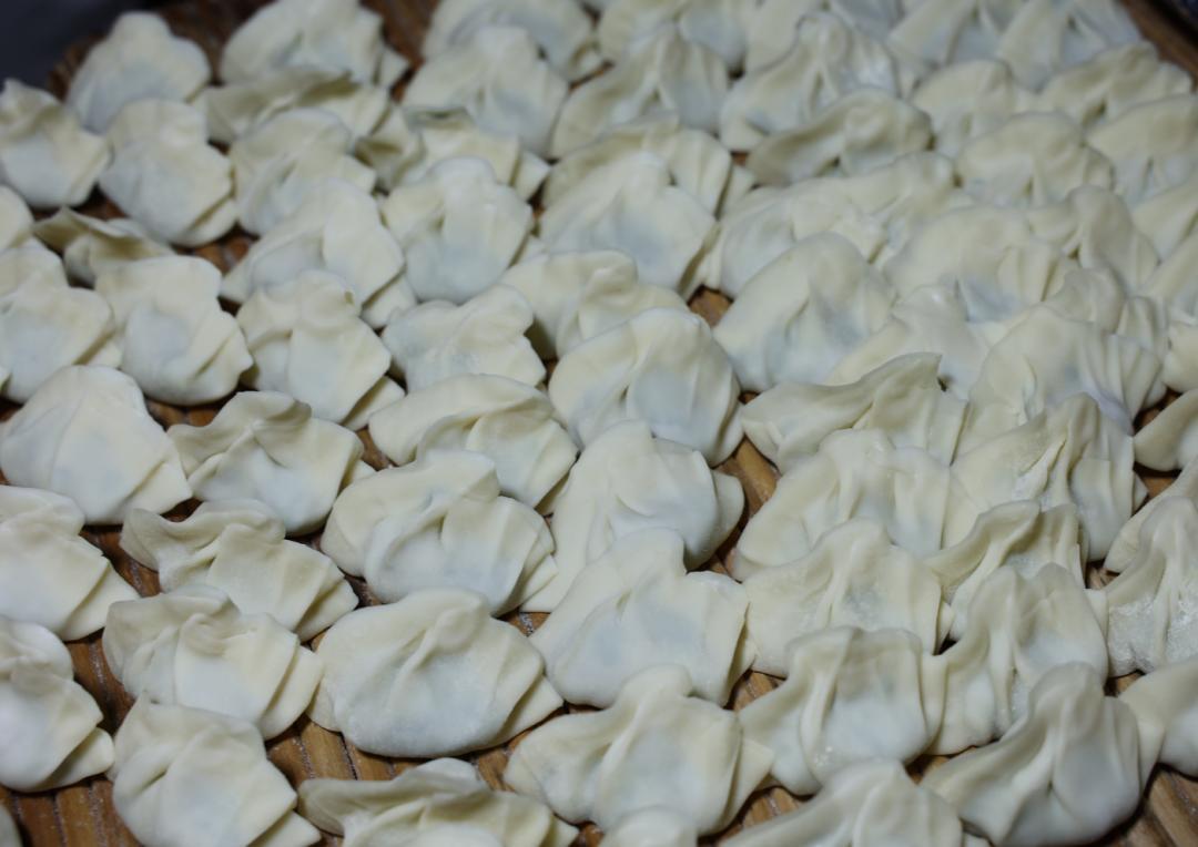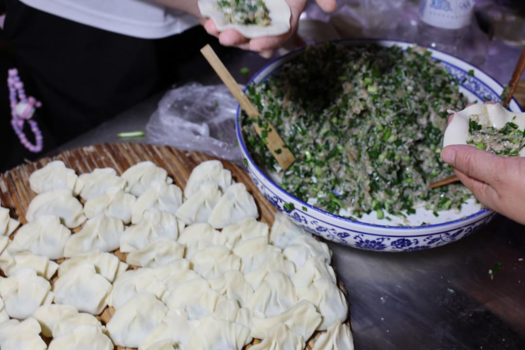 新鲜鲅鱼肉泥被迅速裹入薄韧面皮